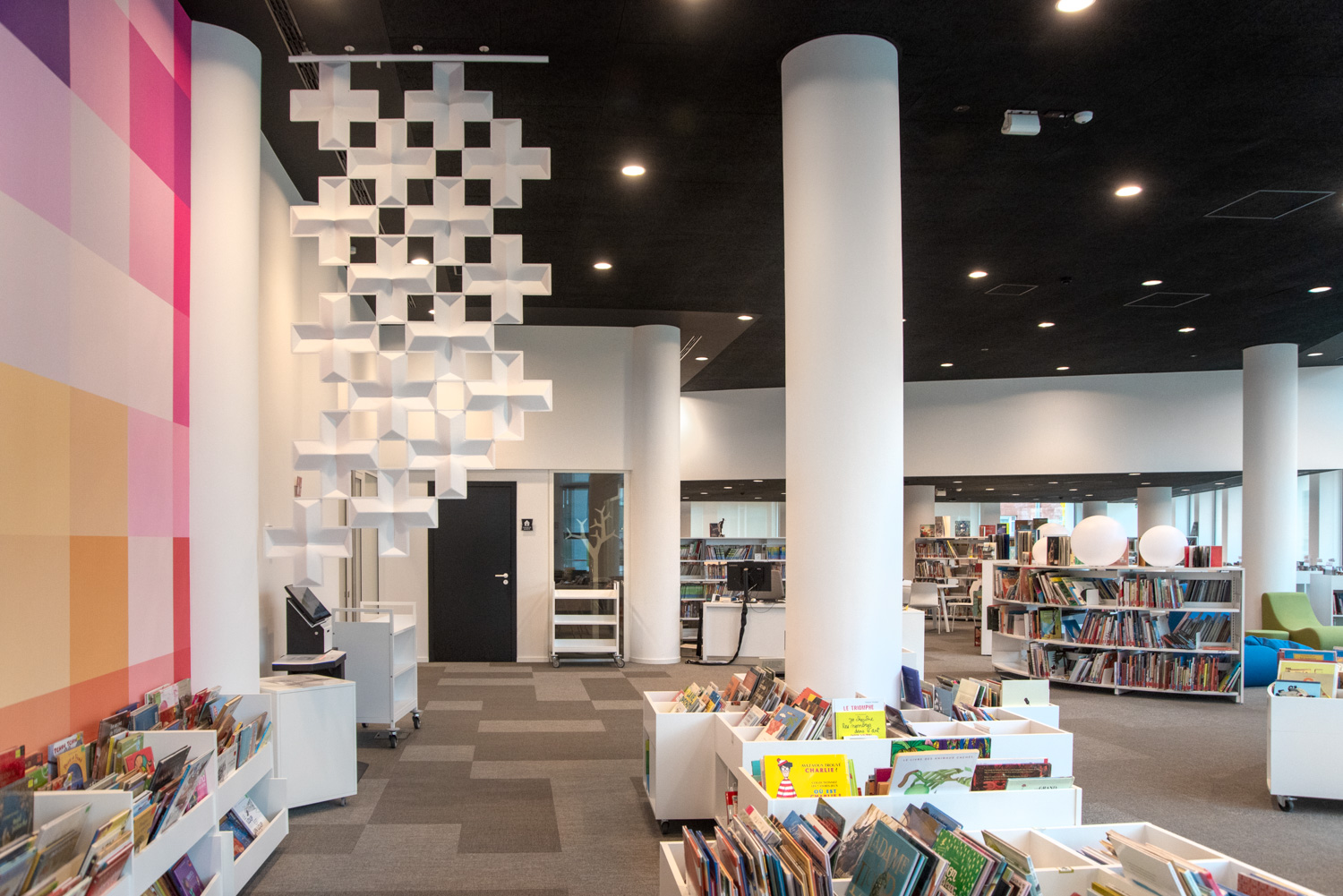 Air-X d’Abstracta offre une solution adaptable pour diviser les espaces et améliorer lacoustique dans les bibliothèques.
