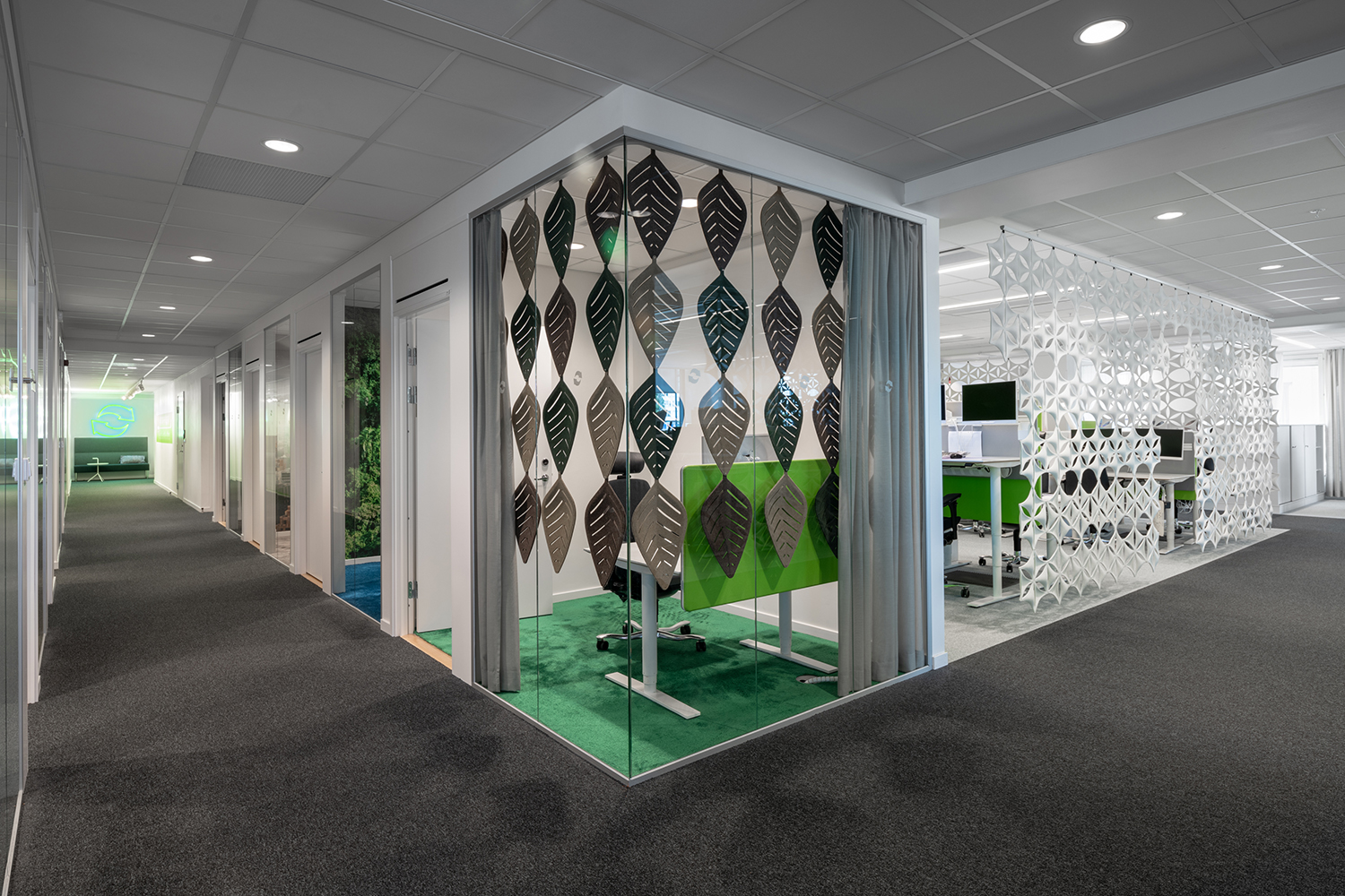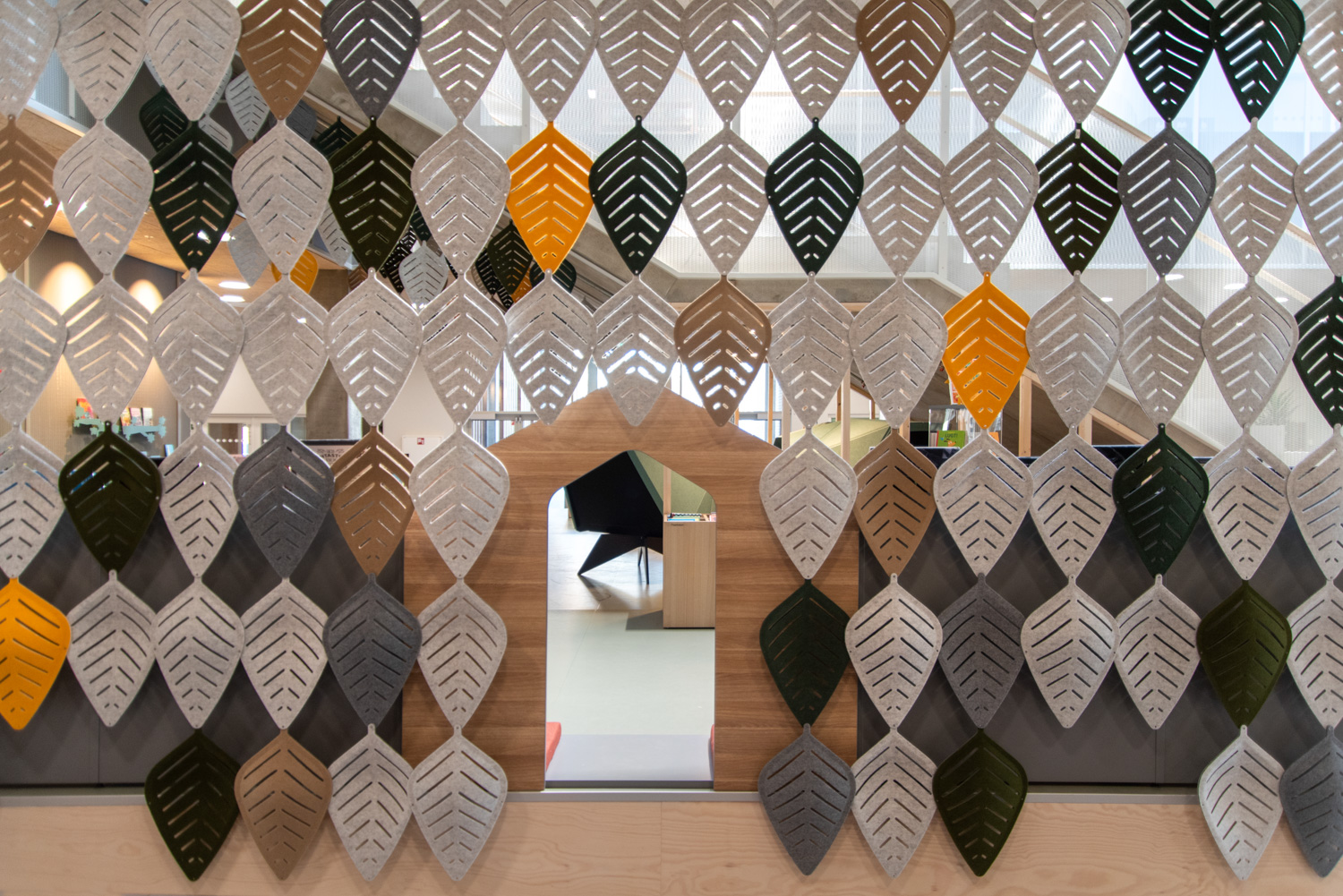 Airleaf permet de créer des zones distinctes et une ambiance sonore agréable tout en conservant le cadre ouvert de la pièce. Vous décidez vous-même du niveau d’ouverture de la pièce en choisissant la combinaison des différents modules en forme de feuille. Ces modules se combinent pour former des panneaux de diffusion sonore de formes et motifs très divers.