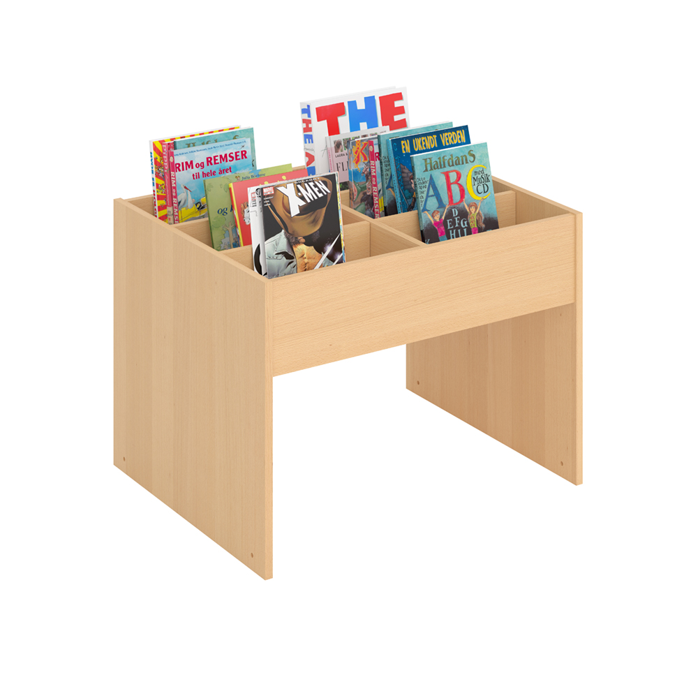 Bac à albums pour une exposition frontale. Il comporte cinq cloisons amovibles.