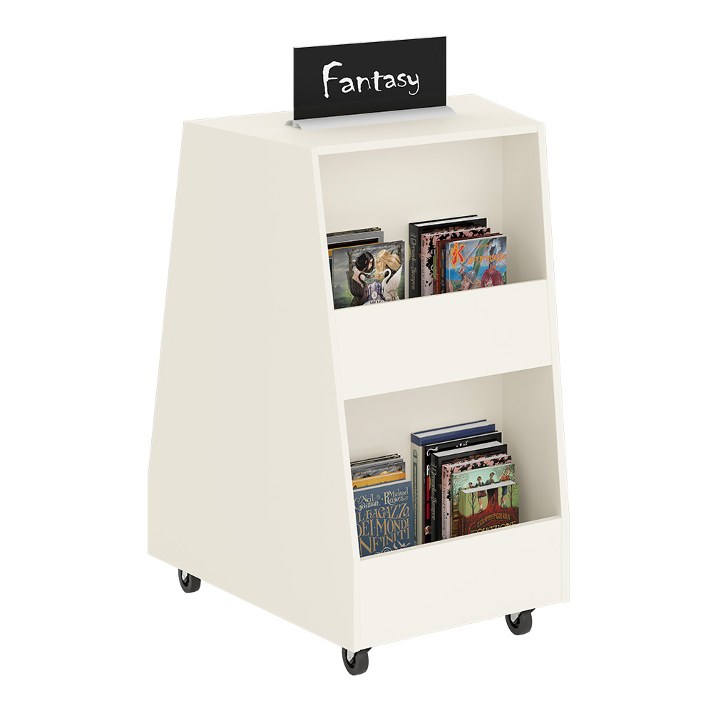 Le bac à albums Kaja est un présentoir à livres double face au design trapézoïdal, spécialement conçu pour les espaces jeunesse contemporains en bibliothèque. Grâce à ses deux niveaux de présentation, il facilite l’accès aux livres pour les enfants de différents âges, tout en favorisant une découverte intuitive.