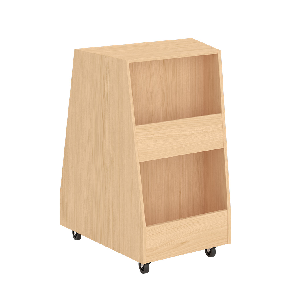 Le bac à albums Kaja est un présentoir à livres double face au design trapézoïdal, spécialement conçu pour les espaces jeunesse contemporains en bibliothèque. Grâce à ses deux niveaux de présentation, il facilite l’accès aux livres pour les enfants de différents âges, tout en favorisant une découverte intuitive.
