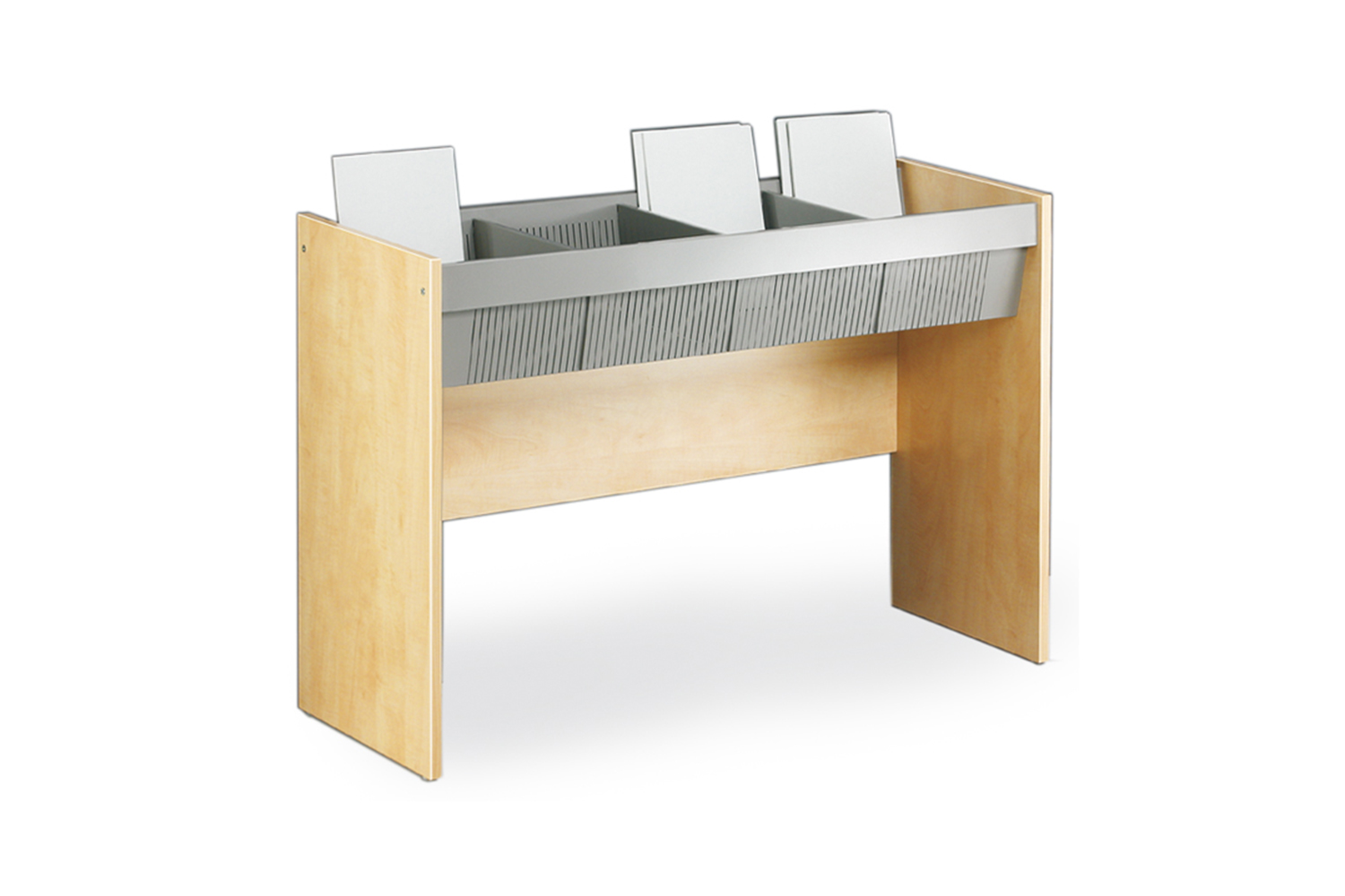 Ce bac à albums offre de nombreuses combinaisons. Il est disponible en unité simple ou double face, comme élément autonome ou comme ajout, ainsi que dans trois hauteurs différentes. Il est idéal pour les livres plus grands et les cartes géographiques, mais convient également pour les DVD grâce à l’utilisation de séparateurs amovibles en métal.