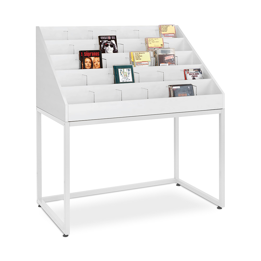 Un présentoir multimédia fonctionnel pour la présentation et le rangement par niveau de titres multimédias. Composé de cinq niveaux, de six compartiments spacieux chacun, permettant une bonne vue d’ensemble et une bonne accessibilité.