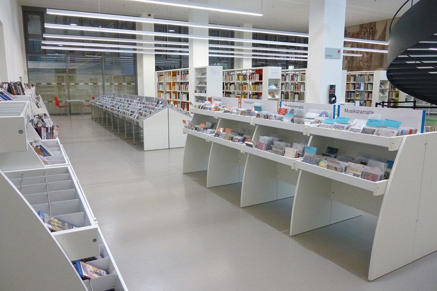 Les lignes arrondies du bac à médias audiovisuels en bois Sinus créeront une atmosphère du plus bel effet dans votre bibliothèque. Il se décline en 4 modèles différents. Ce bac à médias est disponible en modèle simple ou double face, avec à chaque fois un ou deux niveaux de présentation pour les médias.