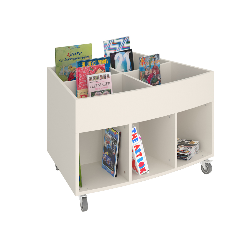 Sara Midi est un ensemble de bacs à albums proposant quatre compartiments de présentation sur le dessus et quatre compartiments de rangement en dessous. Convient pour tous les enfants.