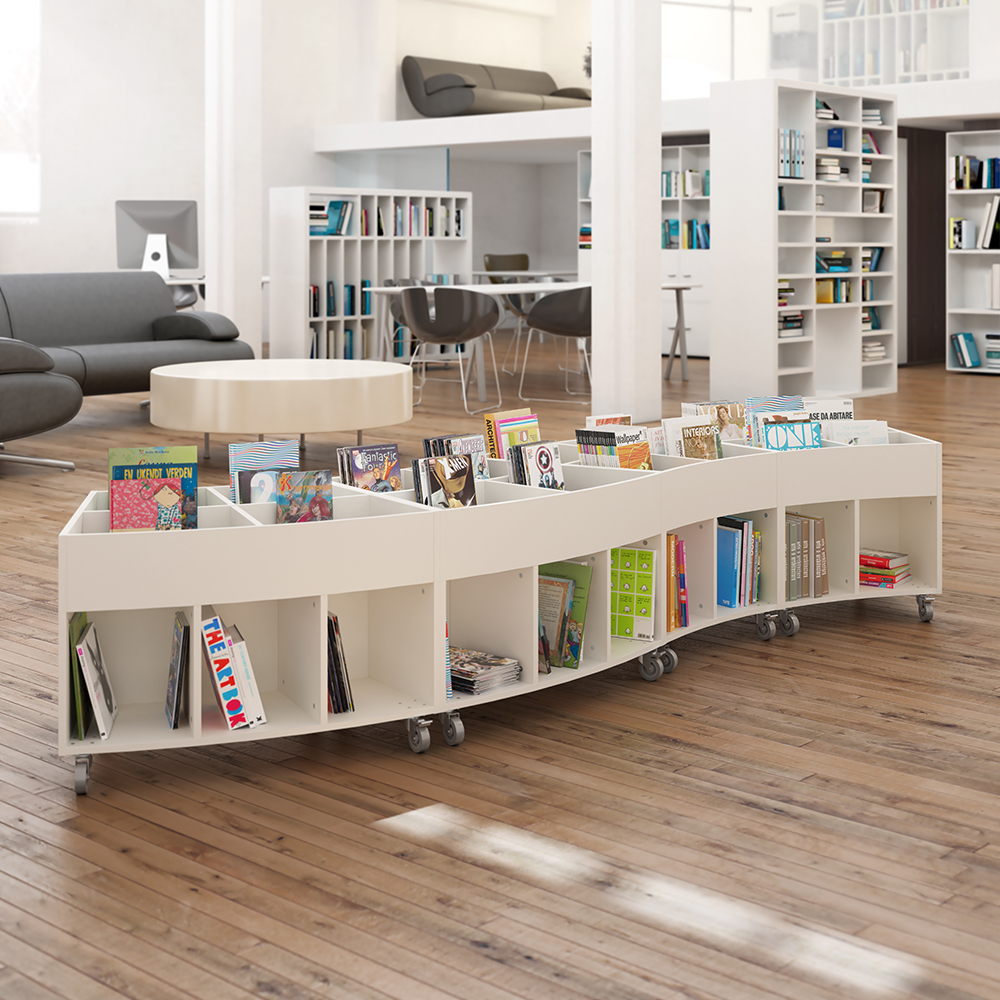 Sara est un système de bacs moderne et fonctionnel permettant de présenter et de ranger tous types d’ouvrages et de supports, en toute simplicité et en attirant l’œil. Suivant la hauteur choisie, les bacs conviennent à la fois aux enfants et aux adultes et peuvent être employés dans tous les secteurs de la bibliothèque.