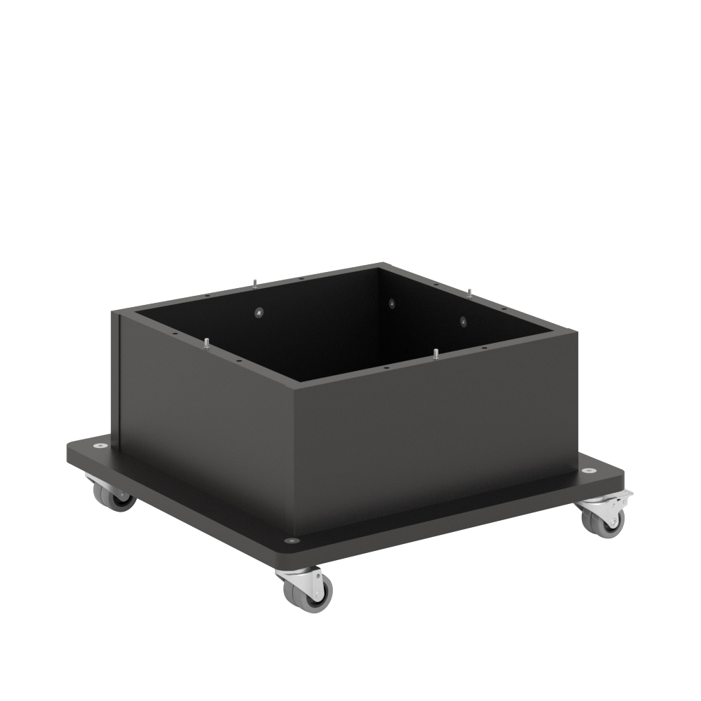 La base est construite de manière à ce que la hauteur de la tour prévue avec base et celle de la version standard sans roues soient identiques.