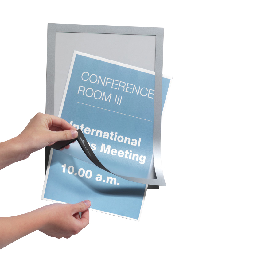 Les cadres (Duraframe® Poster Sun) adhèrent solidement à toutes les surfaces solides et lisses comme les portes, fenêtres, murs, panneaux d’extrémité, etc.
