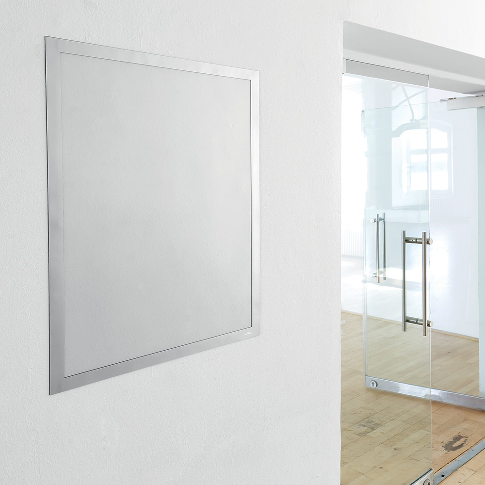 Les cadres ont le même aspect de part et d’autre s’ils sont posés sur une surface vitrée et peuvent être utilisés sur une ou deux faces en format portrait ou paysage.