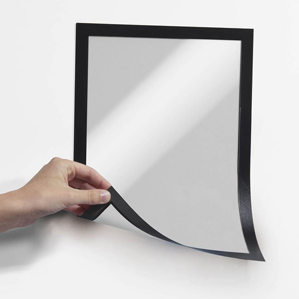 Les cadres (Duraframe® Magnetic) adhèrent à toutes les surfaces métalliques comme les tableaux blancs, les panneaux métalliques, etc.