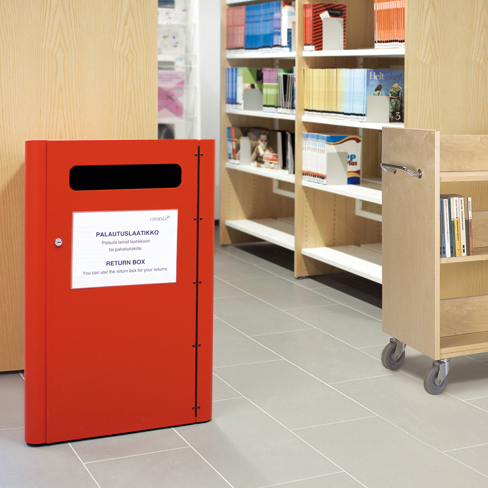 Équipé d’une sécurité antivol (au niveau du socle). Fourni avec des pieds réglables, un chariot de transport pratique et des pictogrammes pour les livres et CD/DVD.