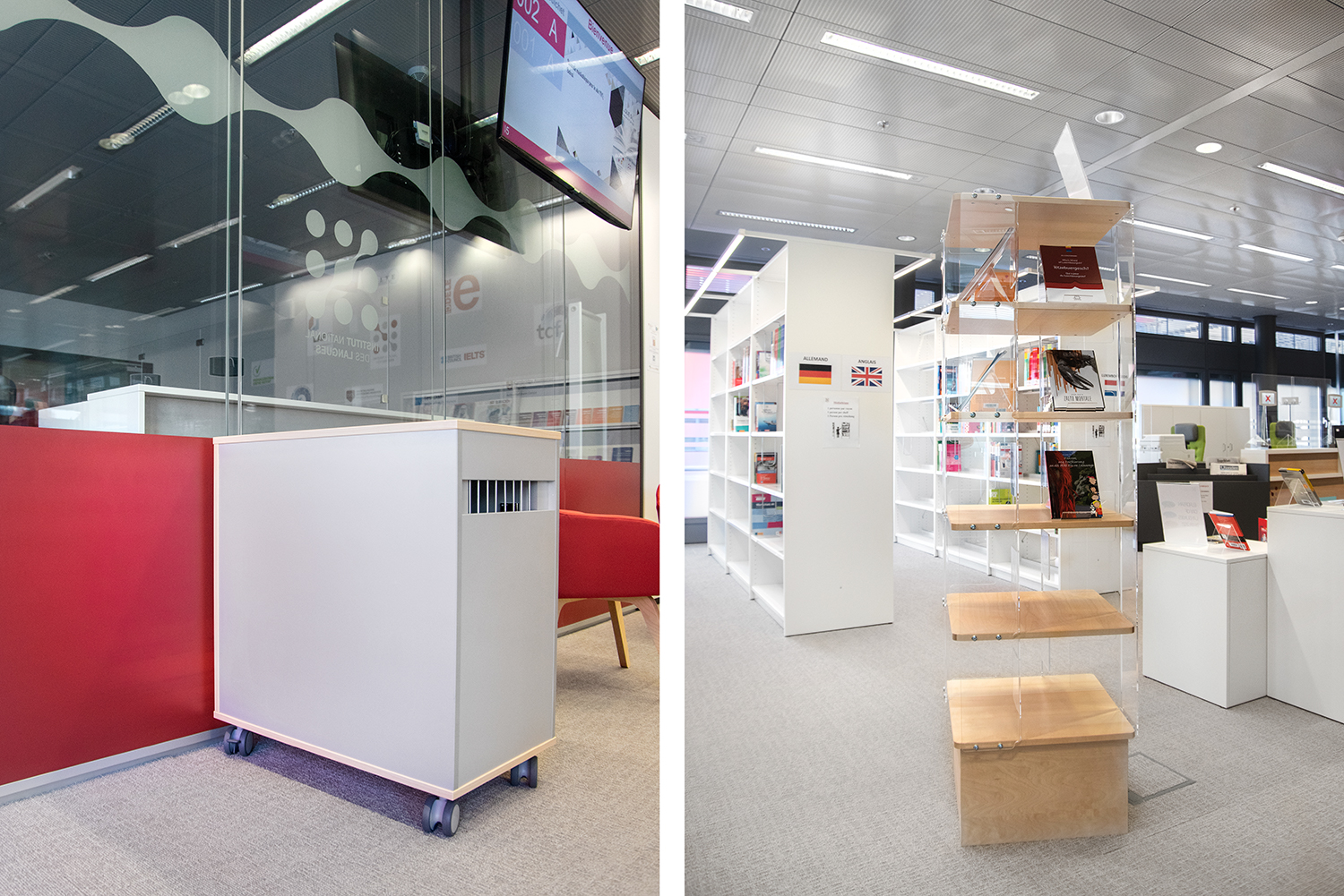 Équipé d’un bac récolteur à fond souple et d’une rampe pour amortir la chute des livres.