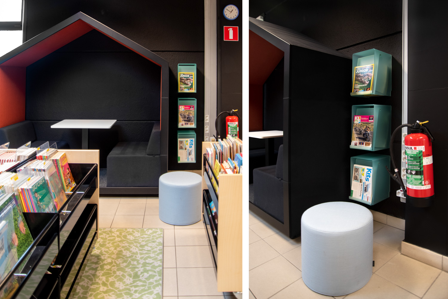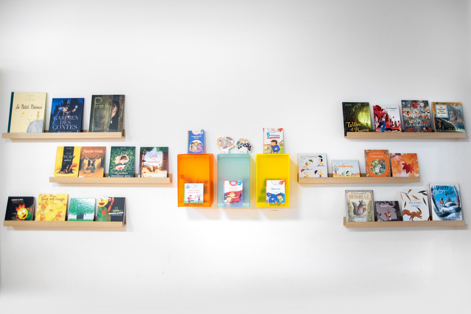 Casiers en acrylique destinés à la présentation et au rangement des périodiques.