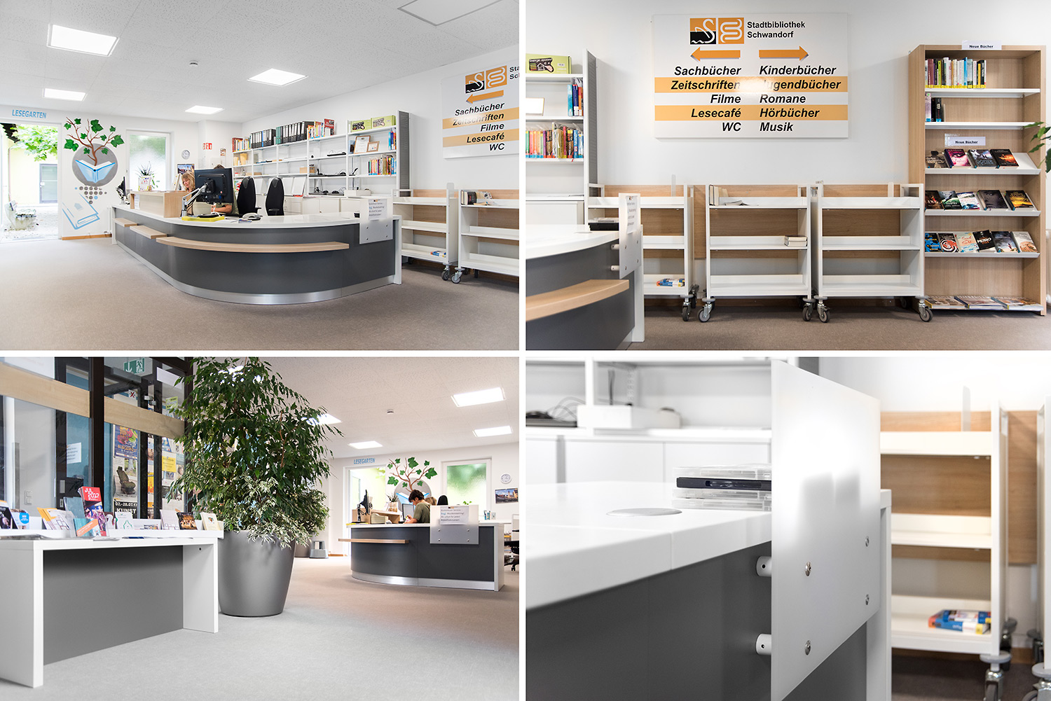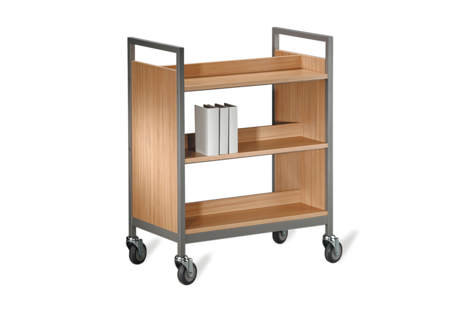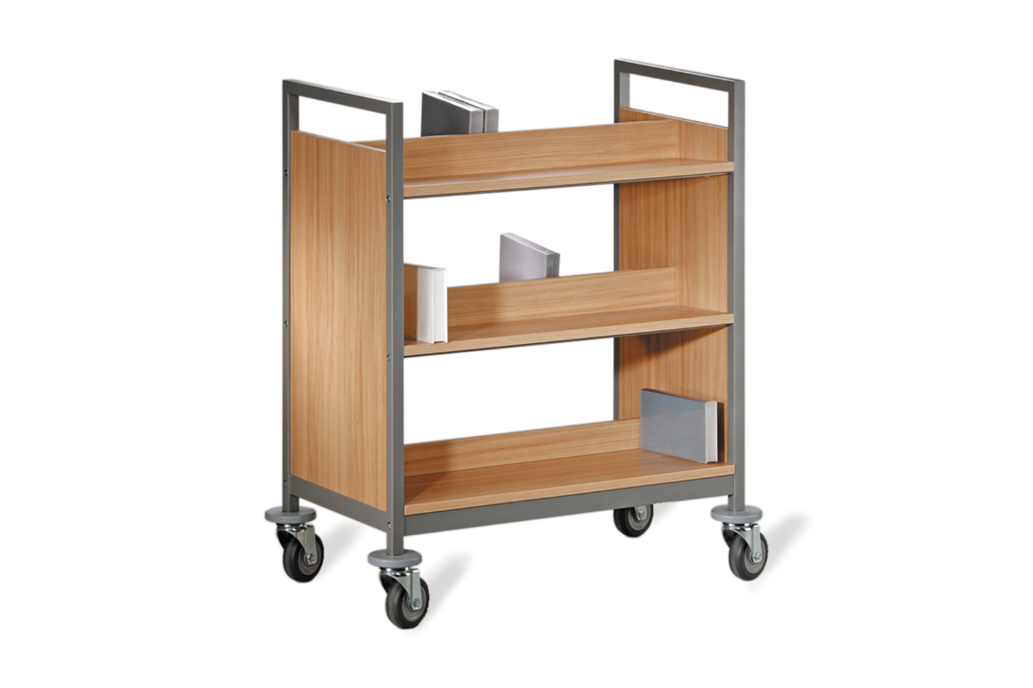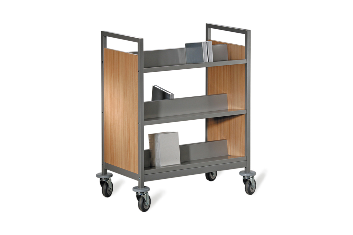La conception robuste et multifonctionnelle de ce chariot à livres lui permet de s’adapter aisément à toutes les exigences spécifiques des bibliothèques ou institutions. Ses nombreuses fonctionnalités telles que des séparations médianes fixes ou amovibles, des tablettes horizontales ou inclinées, en bois ou en métal, en font un chariot à livres polyvalent qui répond non seulement aux besoins quotidiens des bibliothèques, mais aussi aux demandes spécifiques.