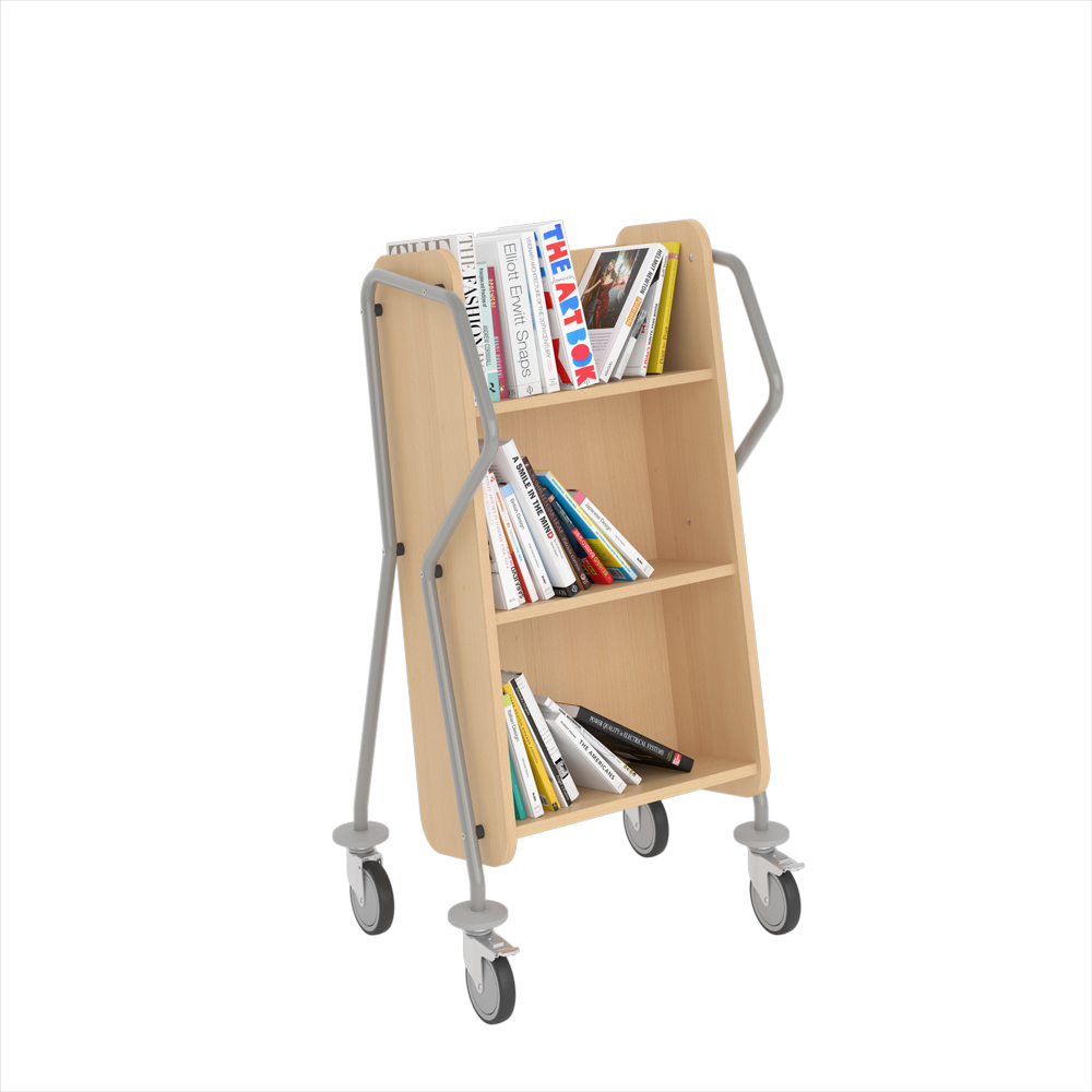 Chariot à 3 étagères fixes généreusement espacées et facilement inclinables. Convient aussi pour les classeurs.