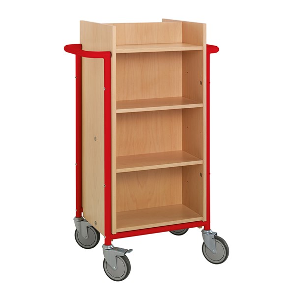Un chariot double face fonctionnel et cloisonné, avec huit étagères amovibles.