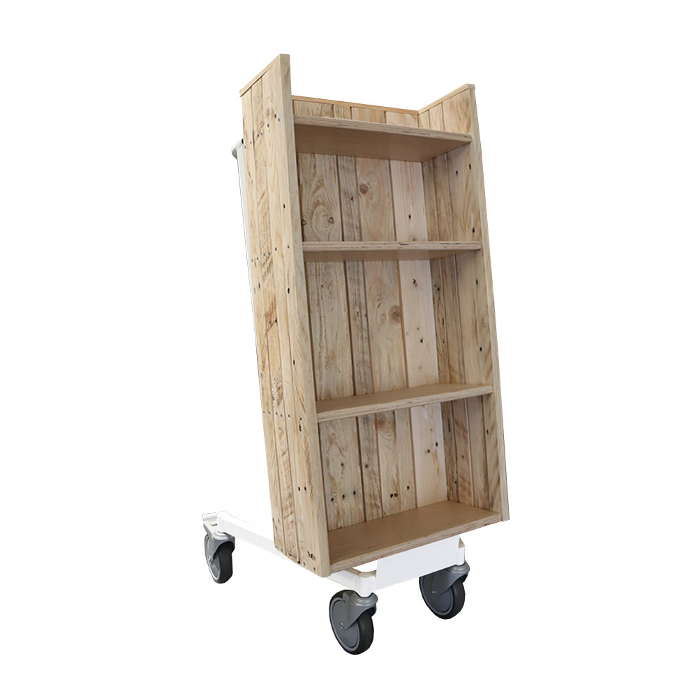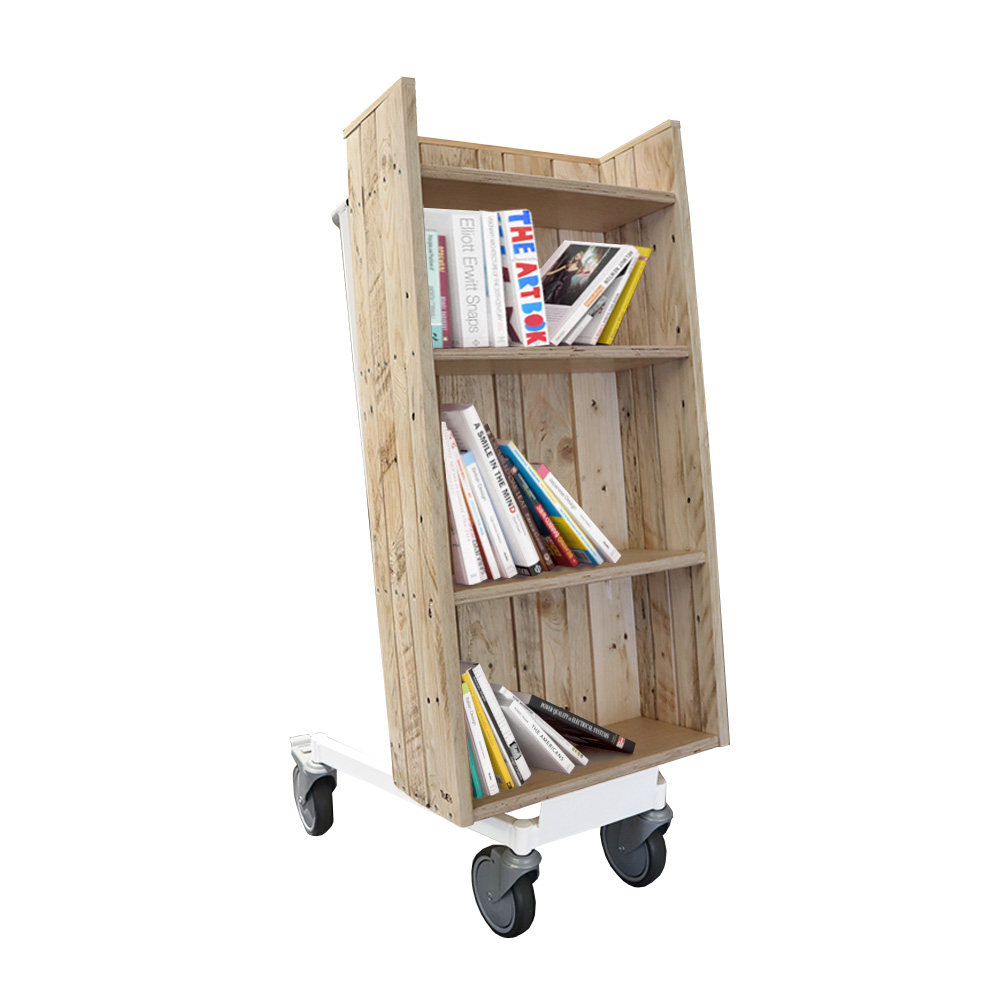 Ce chariot à livres simple face, pratique et facile à utiliser, est équipé de quatre étagères fixes.