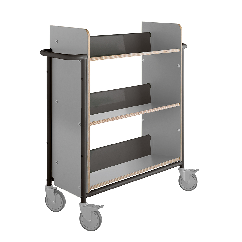 Un chariot simple face fonctionnel à trois tablettes inversées offrant une grande profondeur et un bel espacment entre elles.