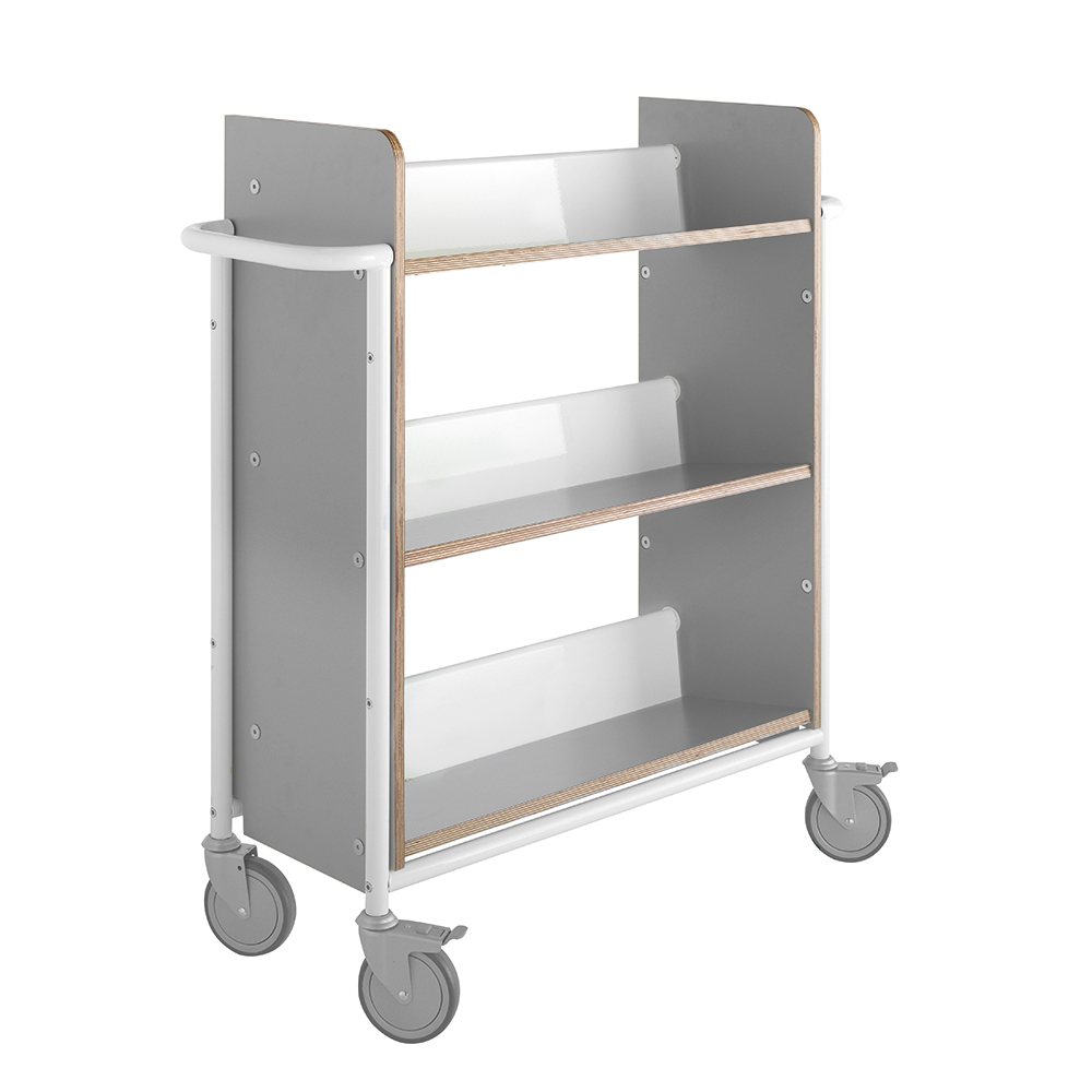 Un chariot simple face fonctionnel à trois tablettes inversées offrant une grande profondeur et un bel espacment entre elles.