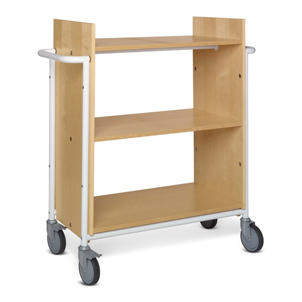 Chariot double face avec trois étagères planes bien dimensionnées.
