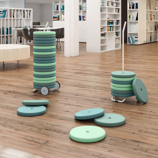 Le coussin existe dans 2 diamètres et dans des coloris différents. A poser sur le sol mais aussi sur gradins ou banquettes.