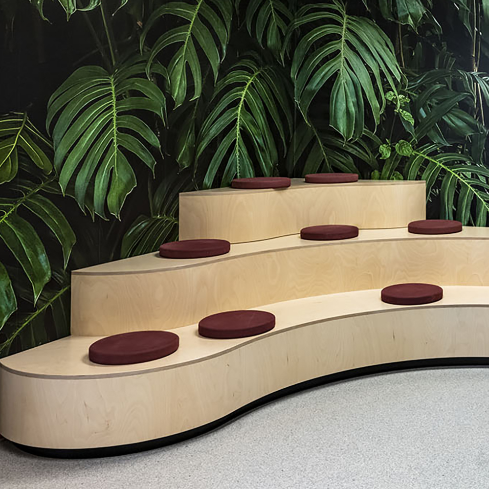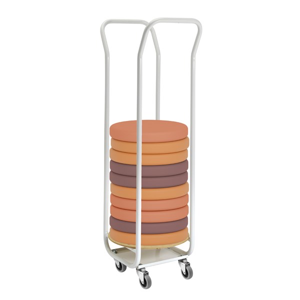 Le coussin existe dans 2 diamètres et dans des coloris différents. A poser sur le sol mais aussi sur gradins ou banquettes.