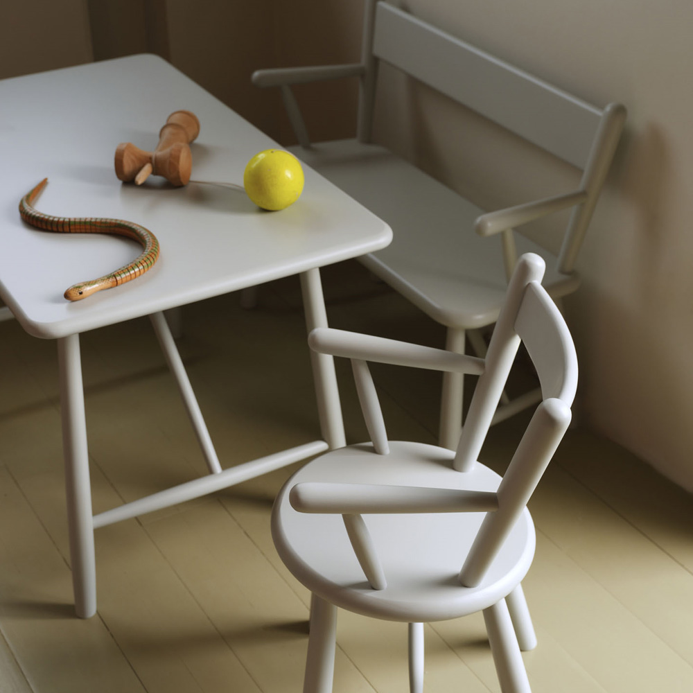Les meubles sont fabriqués en hêtre laqué et nécessitent très peu d’entretien. Ils se nettoient facilement en les essuyant simplement avec un chiffon humide.