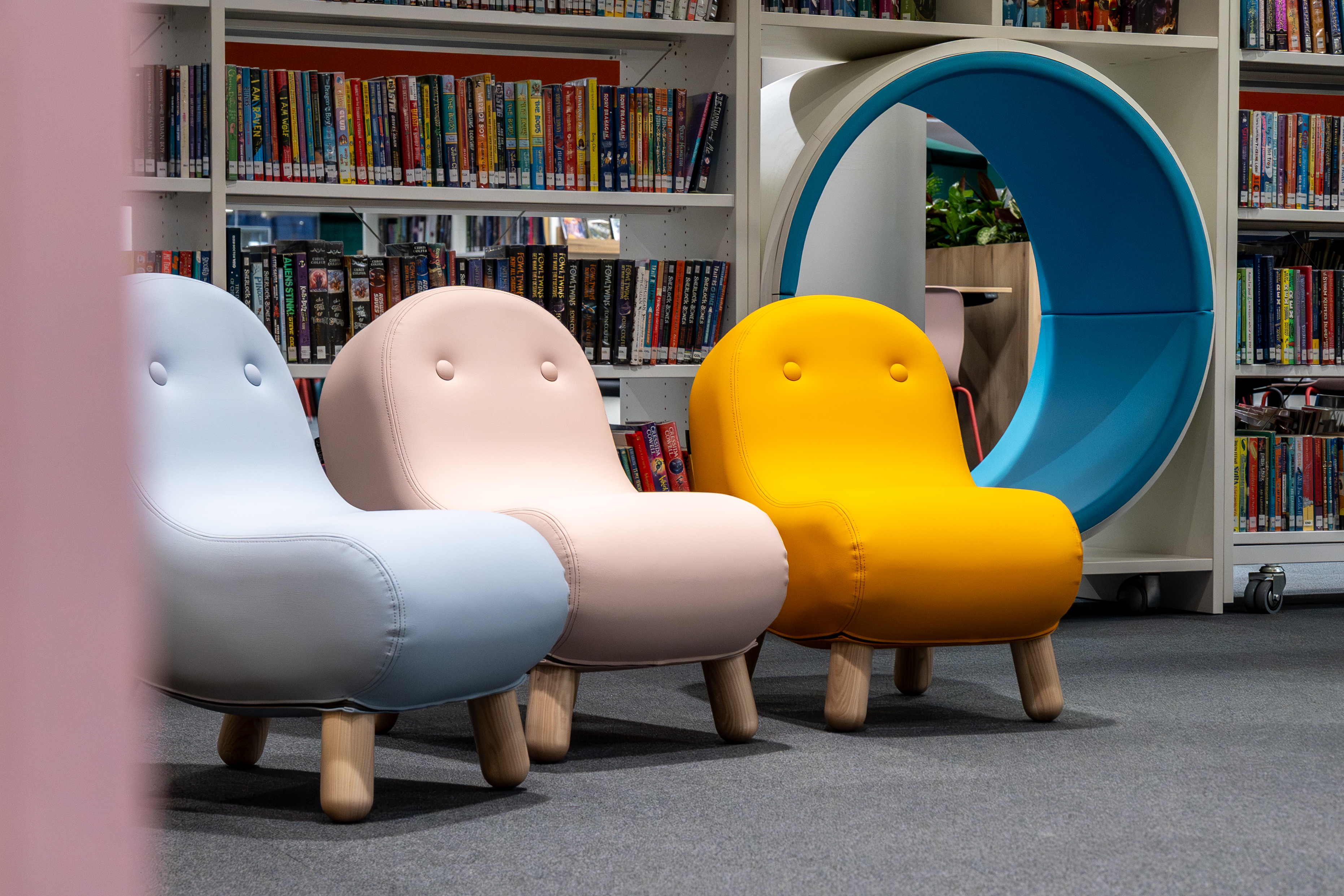 BOB ajoute une atmosphère amusante et charmante au design intérieur de la bibliothèque avec sa simplicité et son confort.