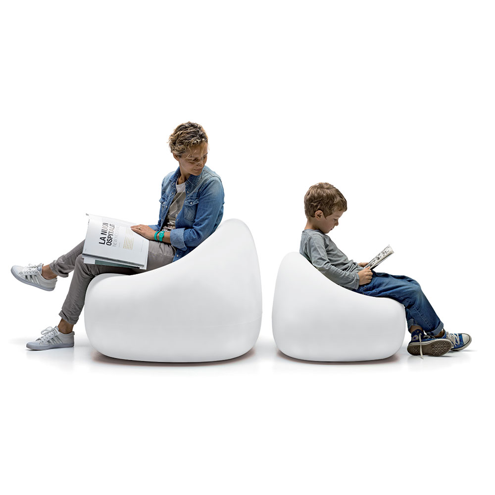 Le fauteuil Gumball, qui évoque la forme d’une poire, est le siège idéal pour s’asseoir entre amis ou se plonger dans une agréable lecture.