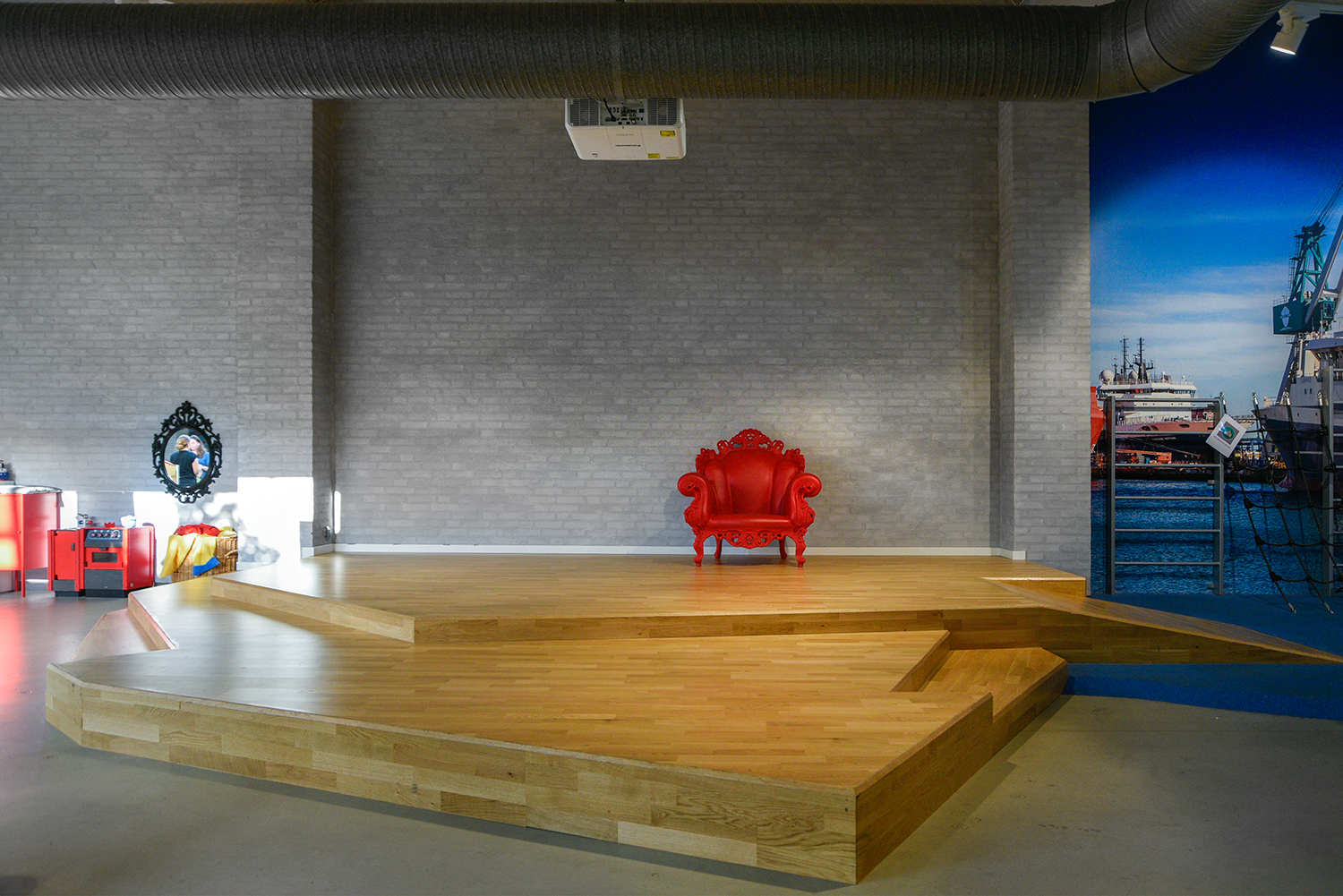 Grand fauteuil pour adultes et un cadre idéal pour raconter des histoires aux enfants.
