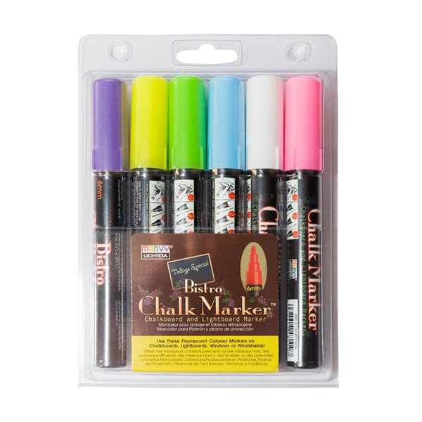 Conviennent articulièrement pour le tableau noir, et le panneau ardoise. Écrivent également sur des surfaces vitrées et des tableaux blancs. Le texte s’efface à l’aide d’un chiffon humide ou d’un effaceur.