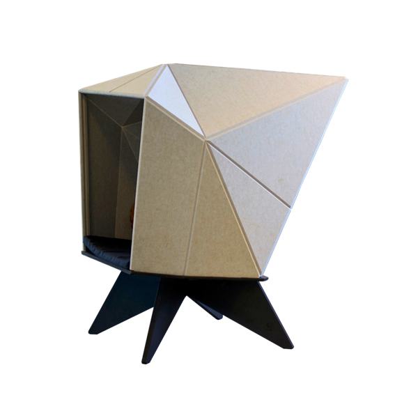 HabiCave est un design danois sculpté en s'inspirant de l'origami japonais. La simplicité et l'esthétique réfléchie font appel aux sens et le matériau acoustique contribue non seulement à réduire le niveau de bruit à l'intérieur de la grotte mais aussi dans la pièce.