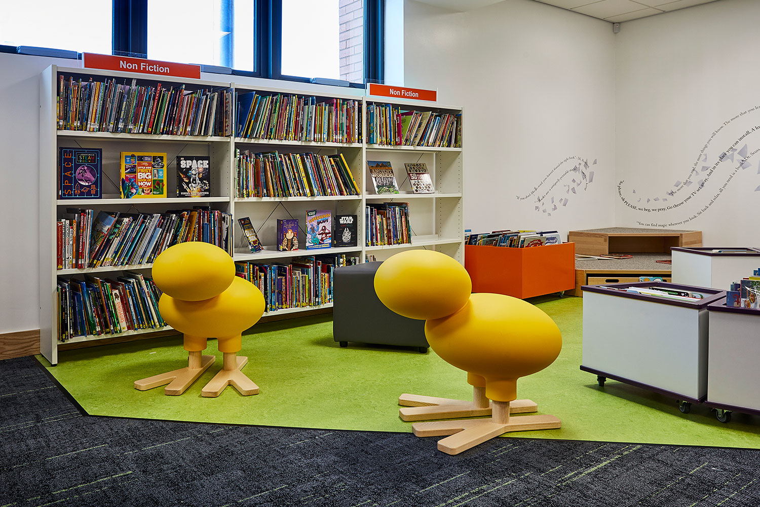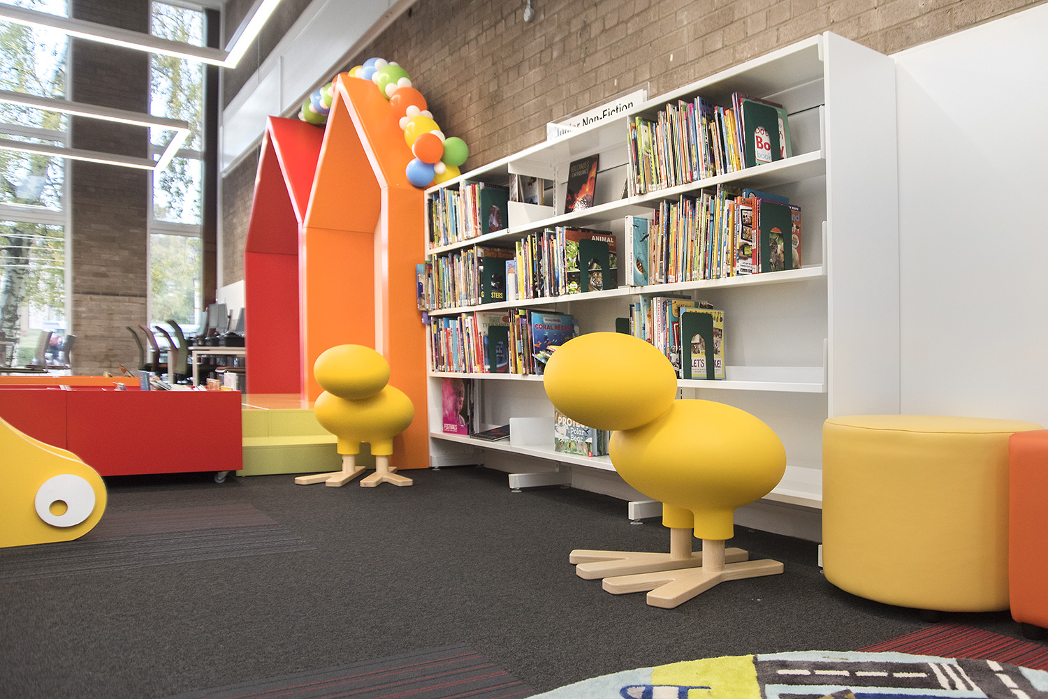 Happy Bird est un compagnon adorable qui invite les enfants à découvrir la bibliothèque. S’utilise pour indiquer la zone enfants, comme siège ou comme objet de décoration !