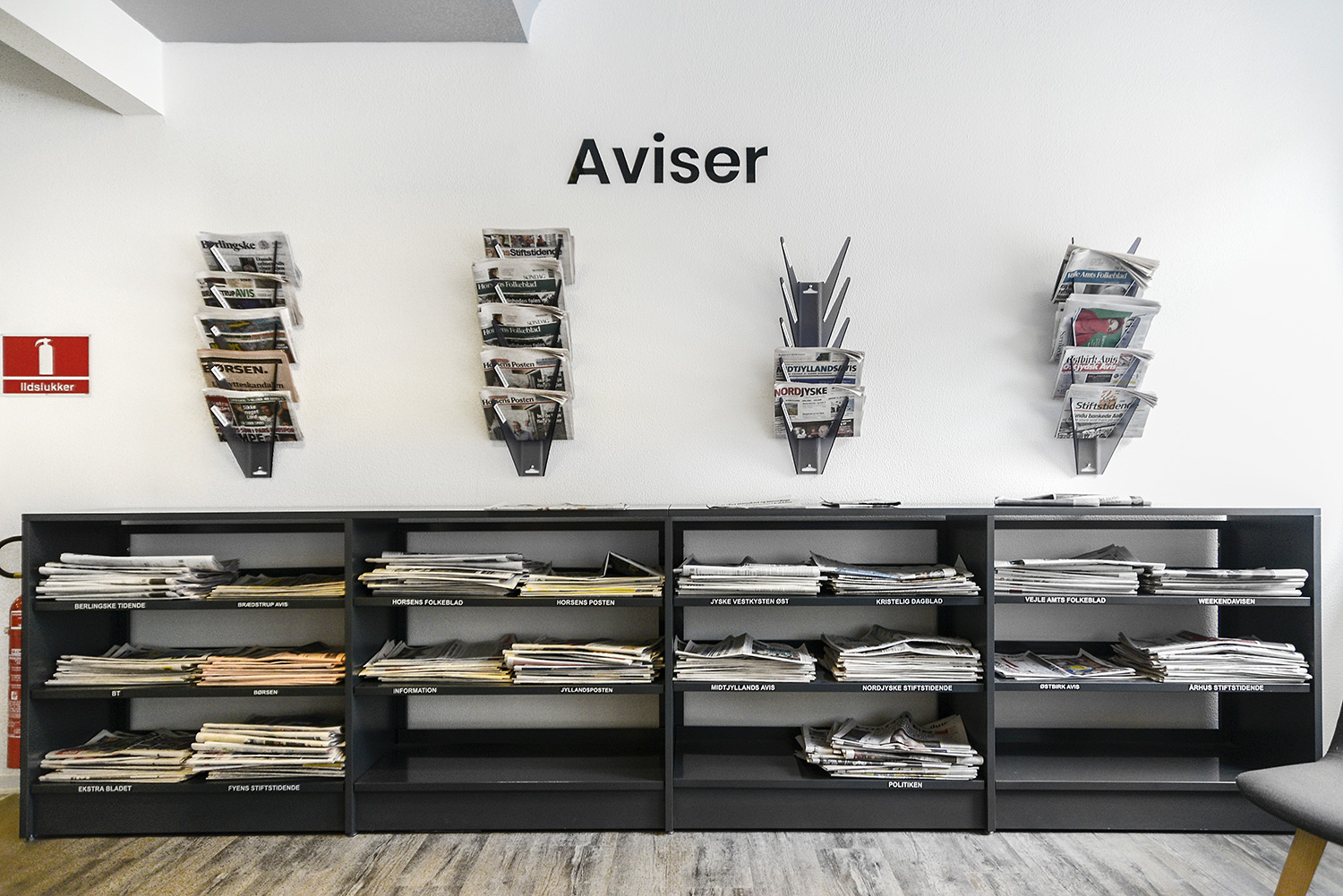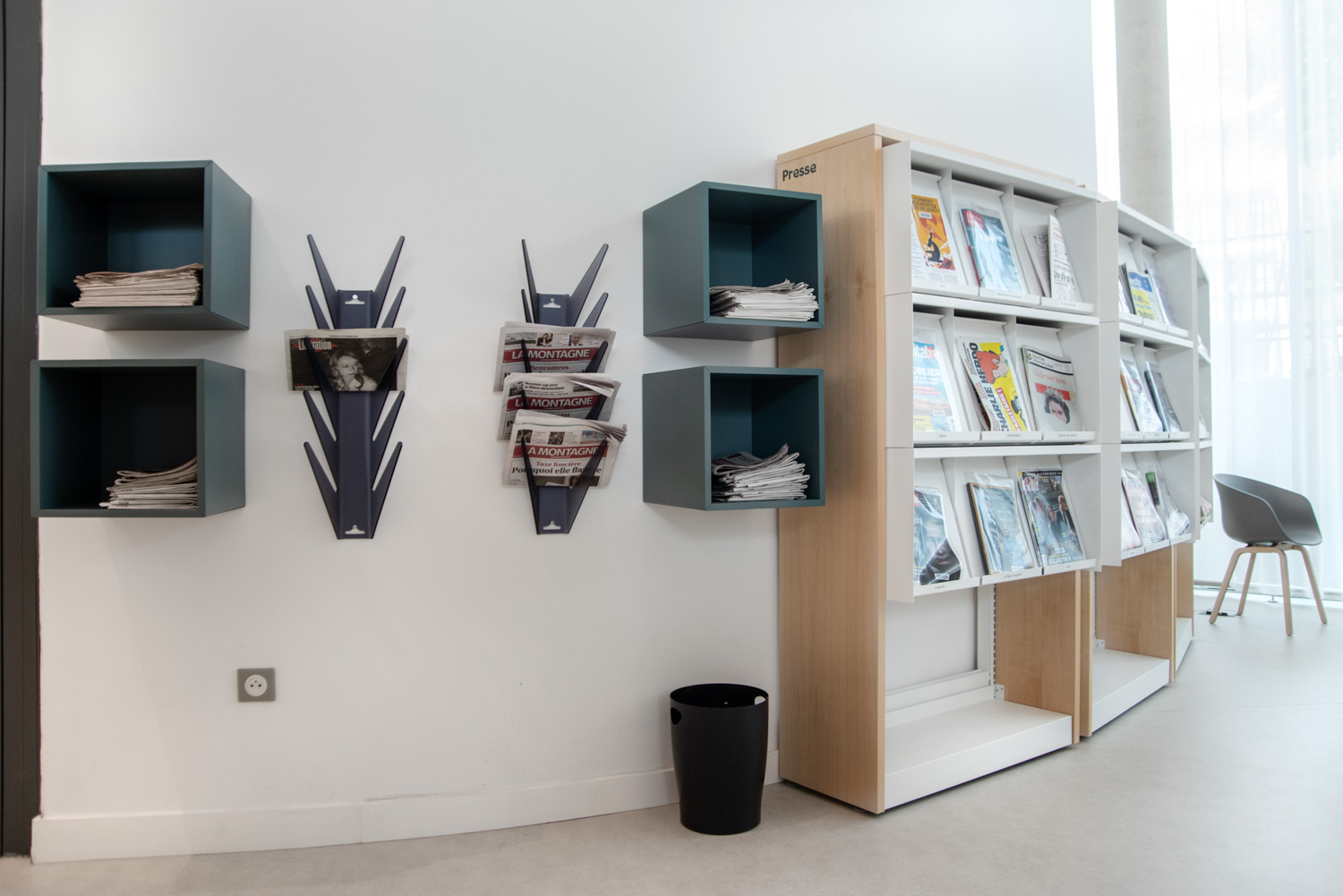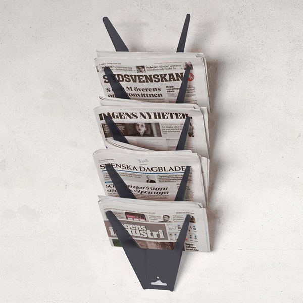 Fixation murale de préférence. Support en acrylique avec encoche en forme de trou de serrure pour les journaux et autres publications
