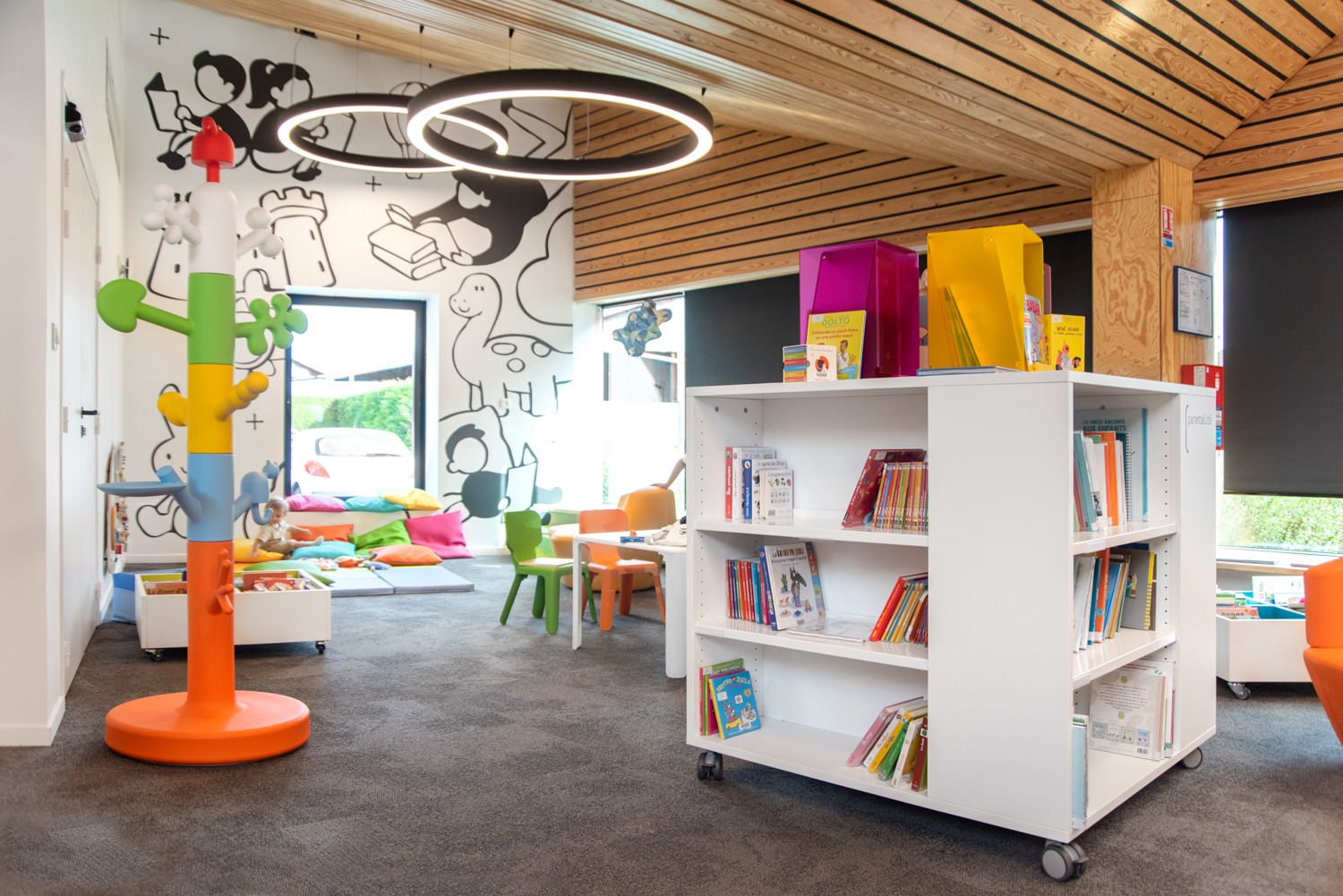 Ce système de rayonnage carré peut être utilisé à la fois pour le rangement et la présentation de livres. Vous pouvez opter pour des étagères droites ou des bacs à albums si vous désirez optimiser l’espace de stockage ou bien exploiter la grande diversité des accessoires fonctionnels disponibles pour créer des espaces de présentation. La partie supérieure du module sert également de table de travail ou d’espace de jeux. Le Lingo Square peut aussi être installé comme tour à thème pour attirer l’attention des visiteurs.