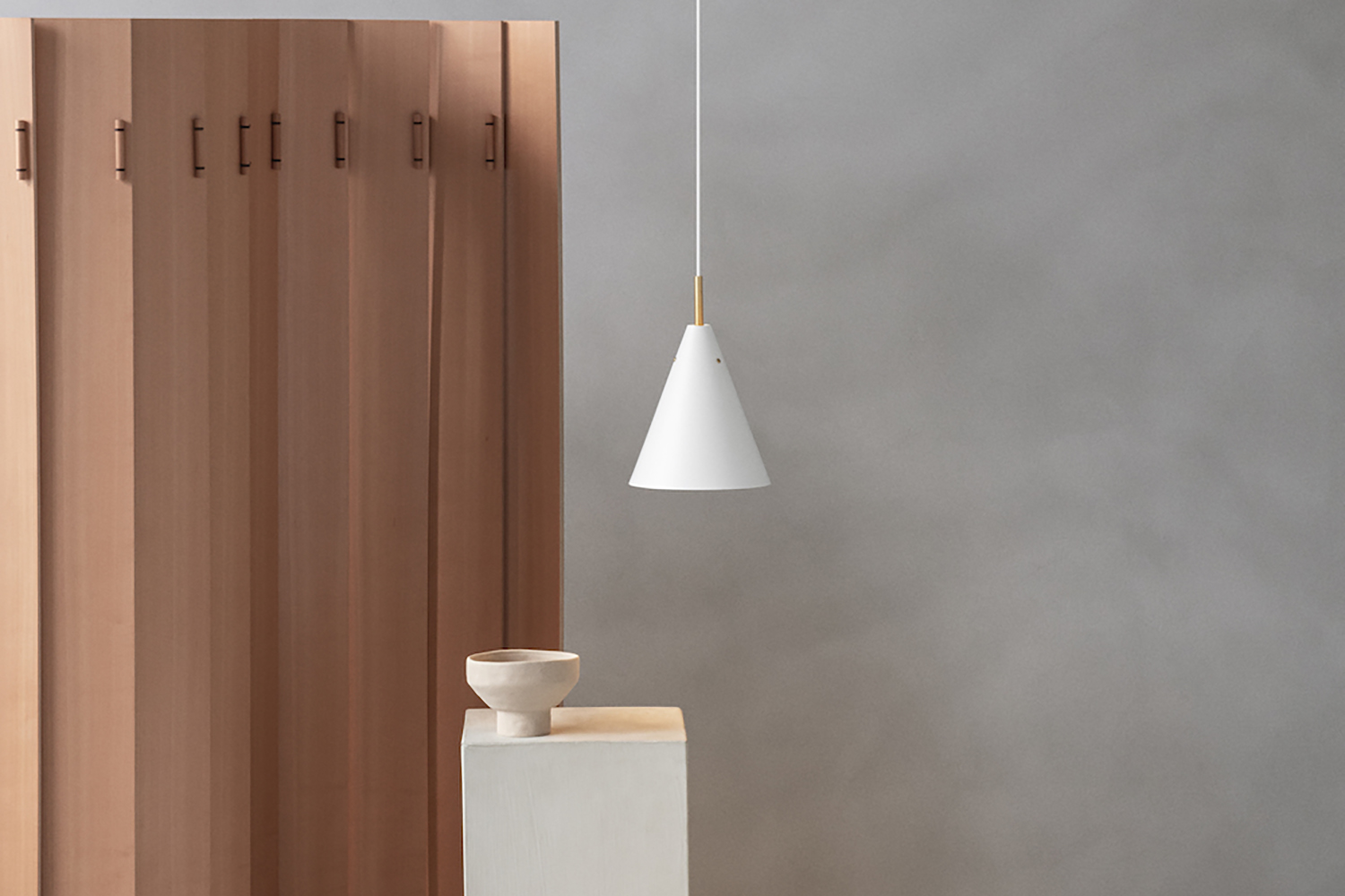 Le Mosaik offre une lumière douce et qui, même descendante, est optimisée par sa conception de forme conique. Le dessus ouvert permet à un flux décoratif de lumière de s’échapper et d’illuminer la fixation en laiton.