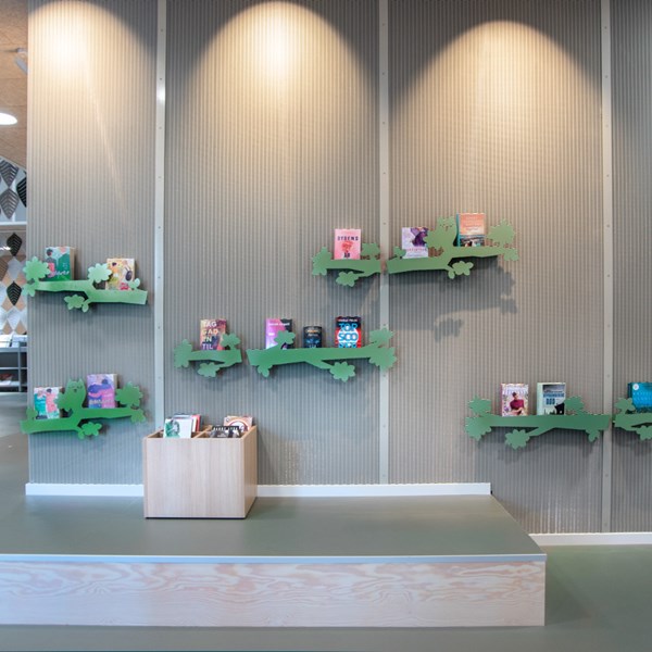 Les possibilités sont presque infinies – mettez les dernières acquisitions en valeur ou créez un espace dédié à une expo photo ou artistique temporaire. Laissez les visiteurs faire leur cueillette sous forme de livres nouvellement parus.