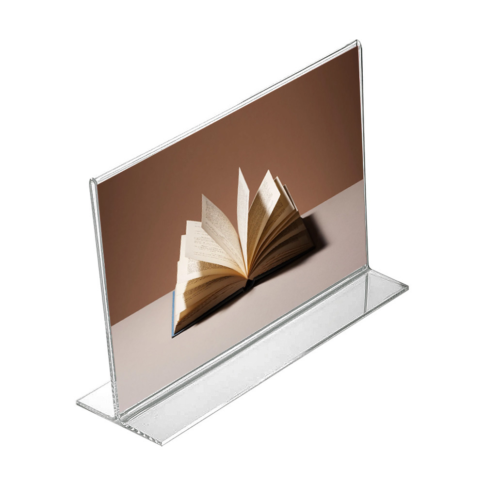 Présentoir pratique pour la signalisation et l’information. Double face pour les tables, les banques d’accueil, etc.