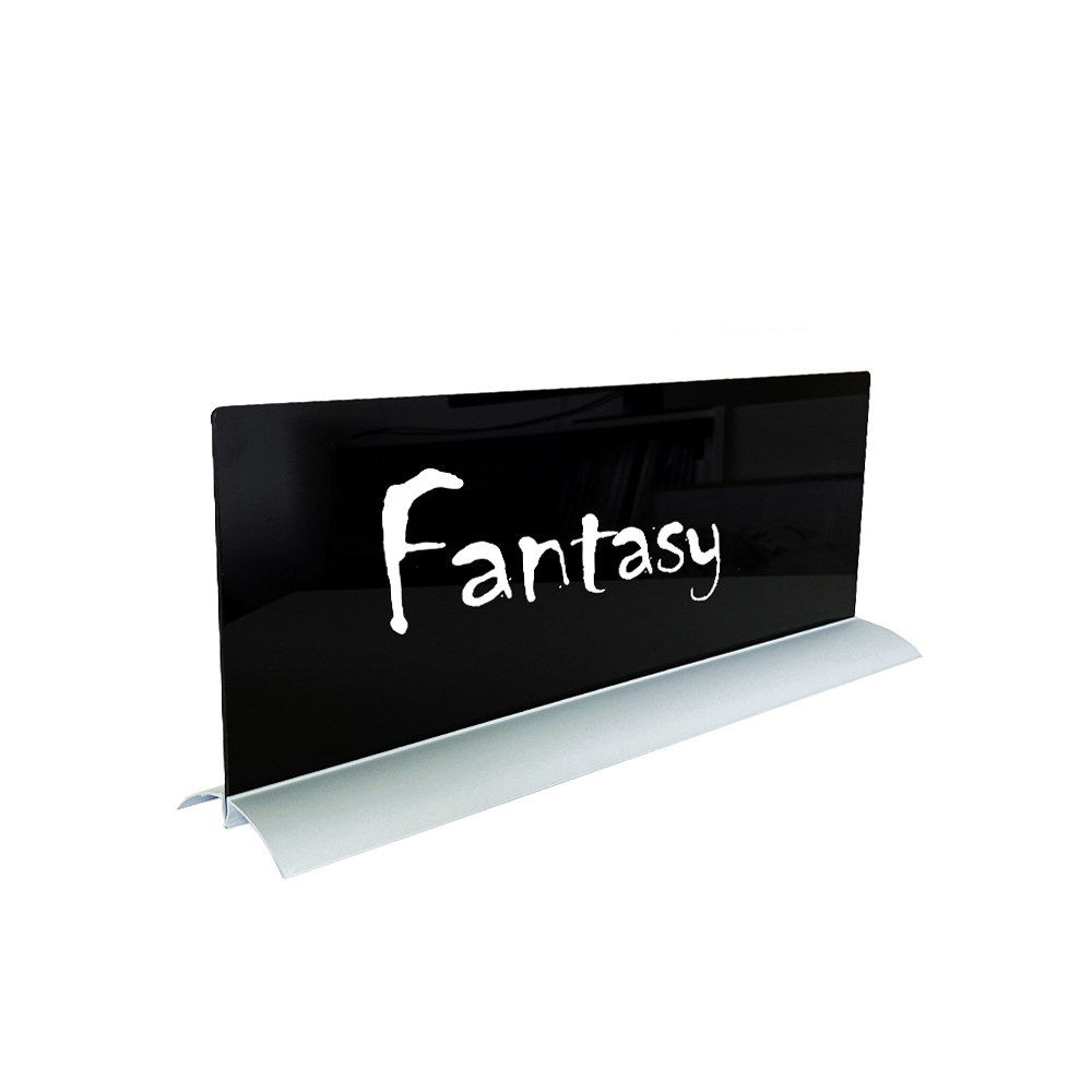 Un présentoir exclusif pour les tables, les banques d’accueil, etc. Inscriptible double face.