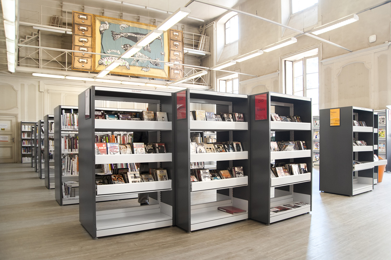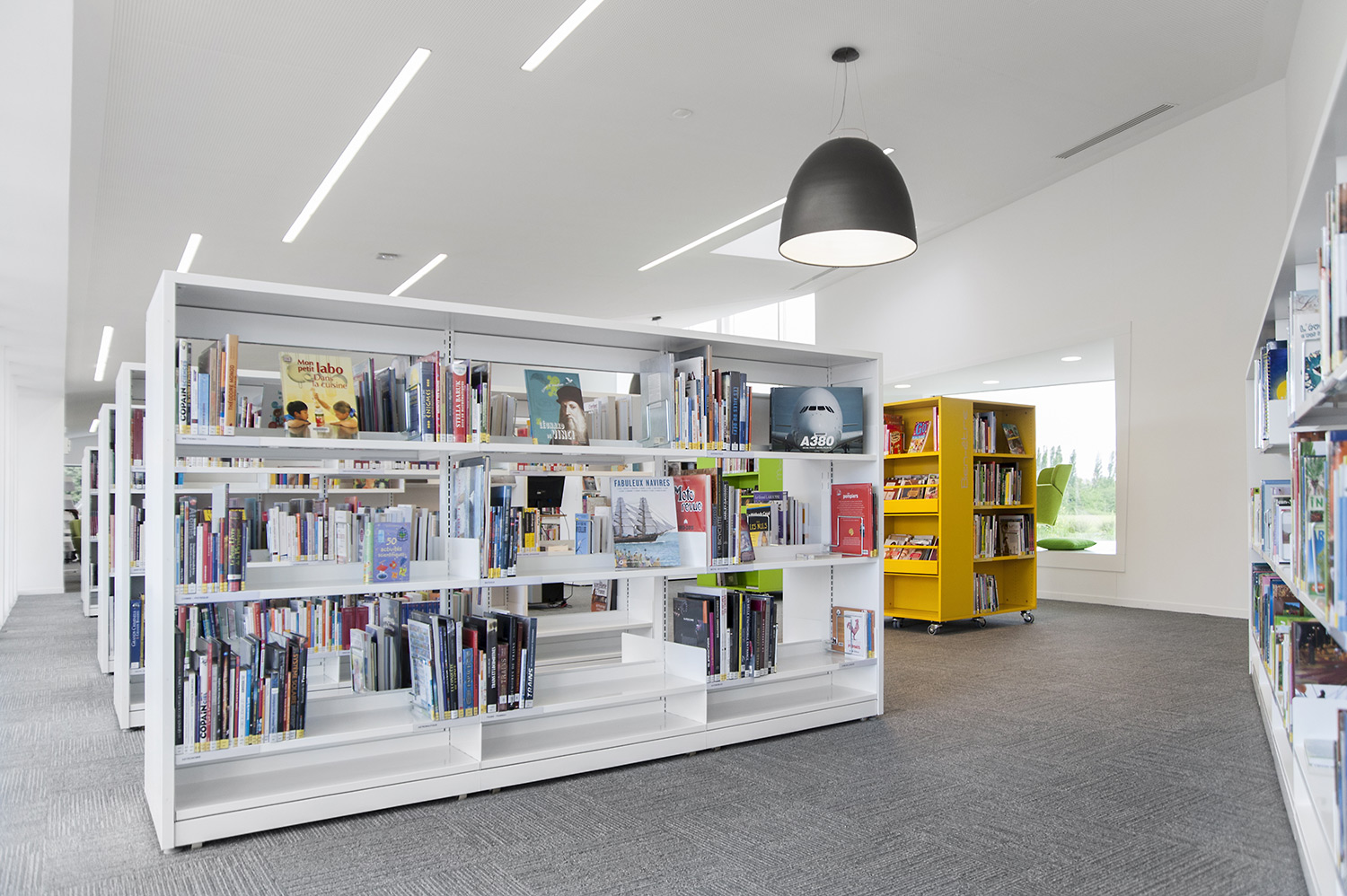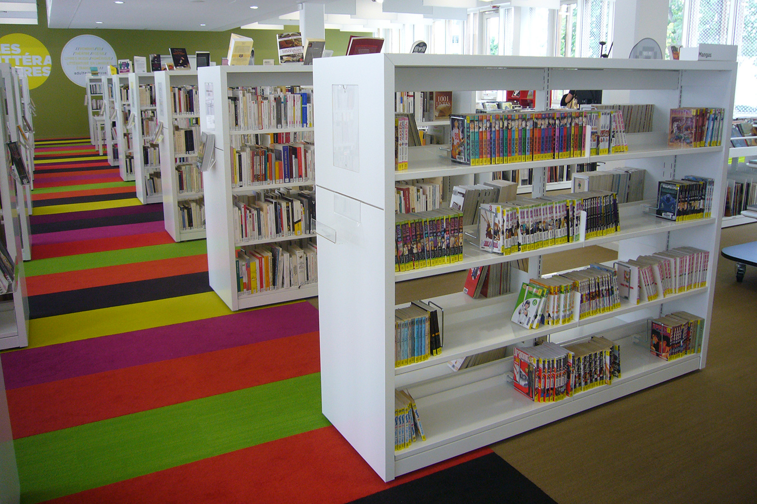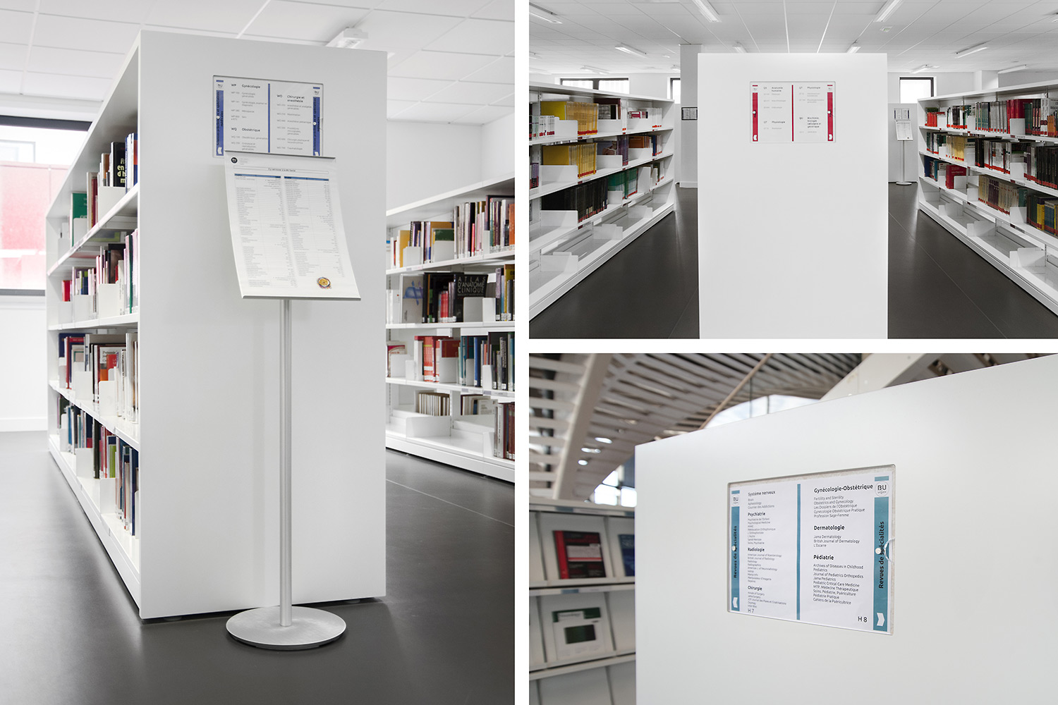 Un fer plat en aluminium laqué est fixé à l’avant du panneaux d’extrémité pour plus de protection et allonger la durée de vie. Un socle en métal peut être ajouté pour souligner l’encadrement du rayonnage.