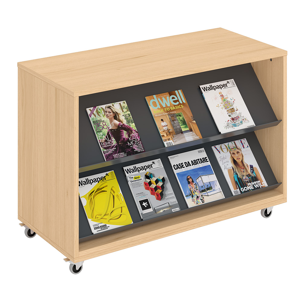 Doté de deux étagères inclinées de chaque côté, Lena offre une visibilité optimale des documents tout en facilitant leur prise en main par les visiteurs. Son format compact permet de créer facilement des points de mise en avant pour les nouveautés, sélections thématiques ou recommandations de lecture, sans pour autant encombrer l’espace.