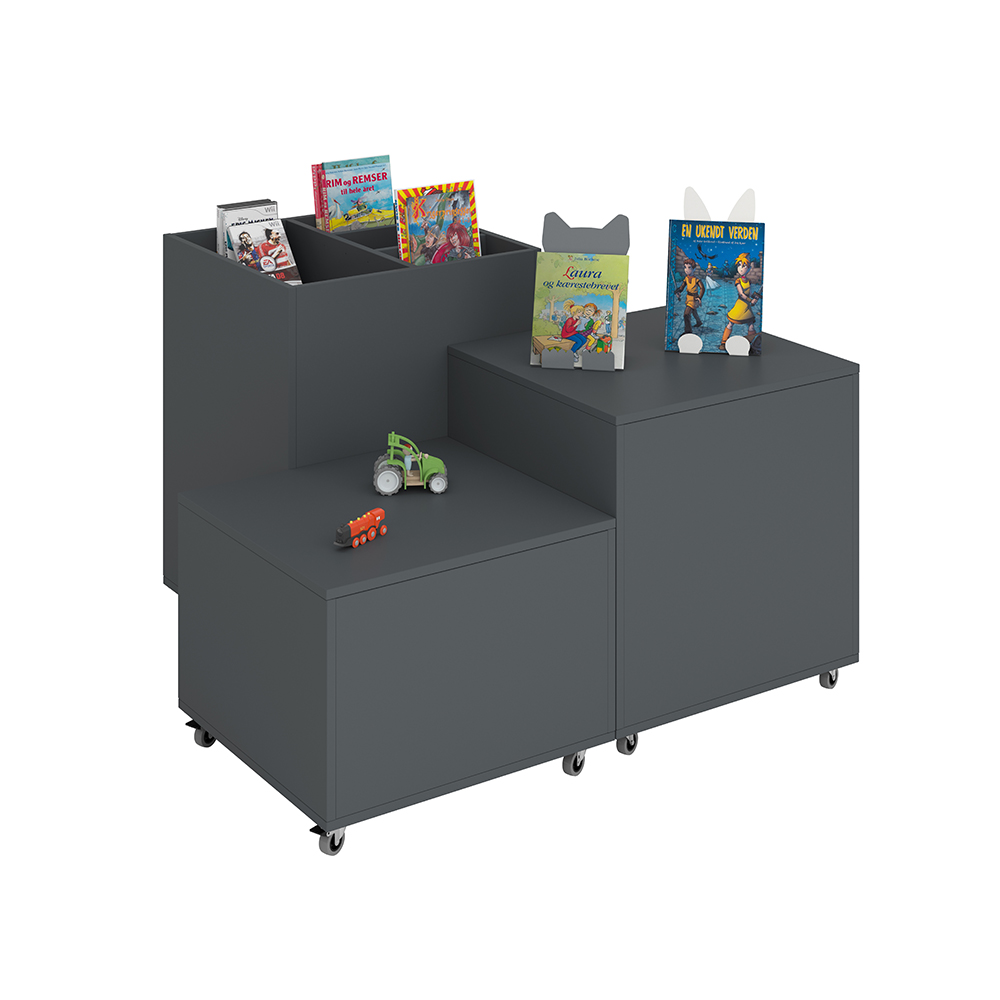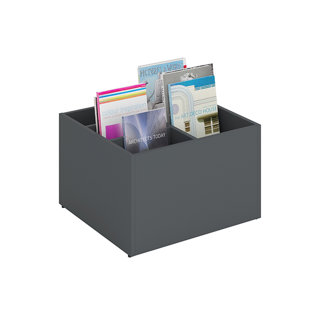 Le podium posséde un couvercle amovible et des séparations astucieuses permettant de diviser la partie supérieure en 2 à 6 compartiments, en fonction de la taille des livres.