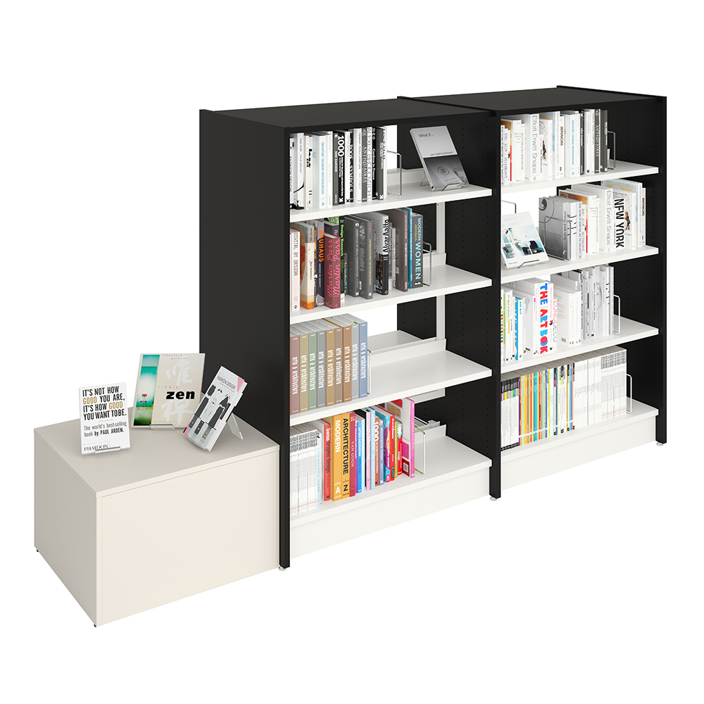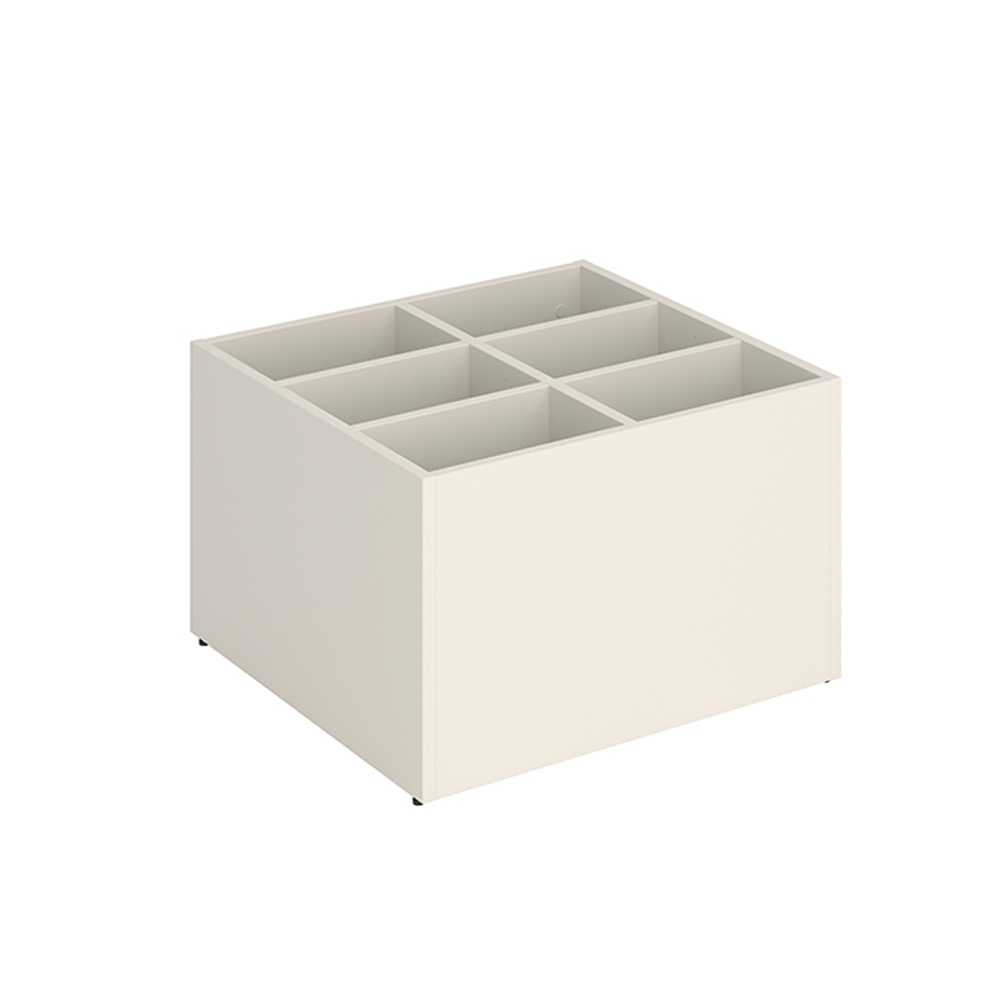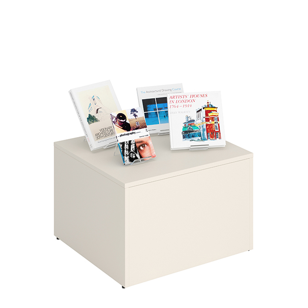 Le podium posséde un couvercle amovible et des séparations astucieuses permettant de diviser la partie supérieure en 2 à 6 compartiments, en fonction de la taille des livres.