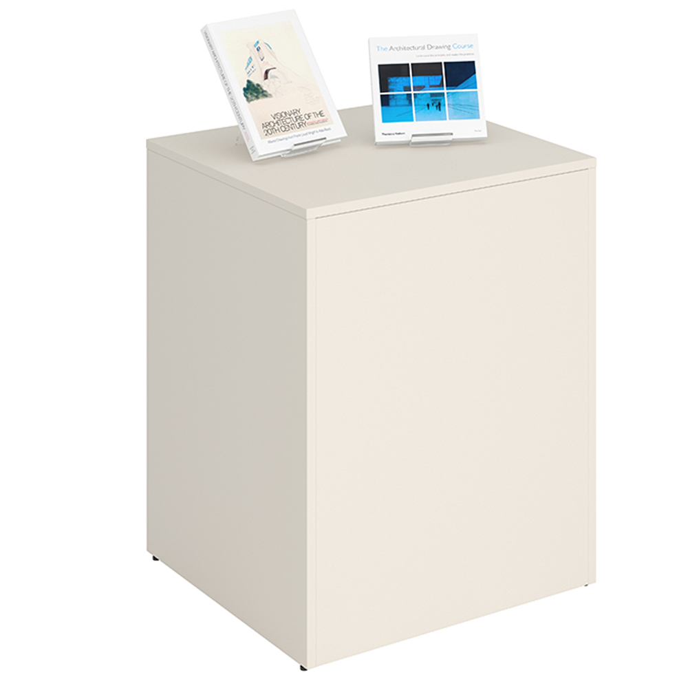 Le podium posséde un couvercle amovible et des séparations astucieuses permettant de diviser la partie supérieure en 2 à 6 compartiments, en fonction de la taille des livres.