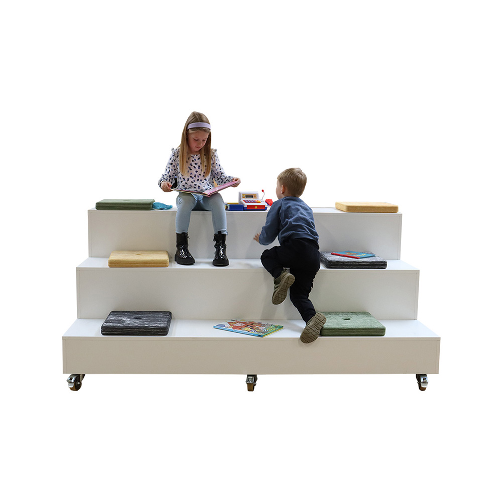 Avec son design minimaliste et élégant et ses charnières dissimulées, Verona peut être utilisé seul ou combiné avec d'autres unités. Au centre d'un espace ou contre un mur. À l'arrière, un grand espace est prévu pour ranger des objets tels que des coussins de siège, des jeux, des livres et des jouets, ce qui permet de laisser libre cours à la créativité. La partie supérieure du podium peut également être facilement inversée, ce qui permet de positionner les compartiments de rangement vers l'avant.