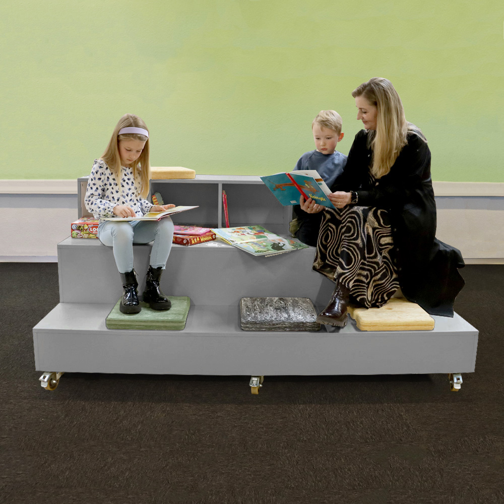 Avec son design minimaliste et élégant et ses charnières dissimulées, Verona peut être utilisé seul ou combiné avec d'autres unités. Au centre d'un espace ou contre un mur. À l'arrière, un grand espace est prévu pour ranger des objets tels que des coussins de siège, des jeux, des livres et des jouets, ce qui permet de laisser libre cours à la créativité. La partie supérieure du podium peut également être facilement inversée, ce qui permet de positionner les compartiments de rangement vers l'avant.