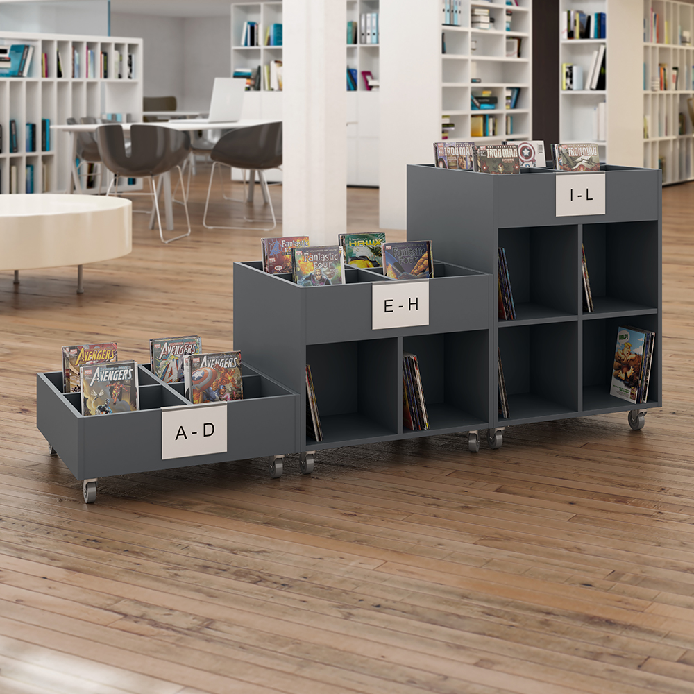 Porte affiche en acrylique anti-reflet pour panneau d’extrémité de rayonnage bois (max 22 mm) ou bac à livres (max 20 mm).