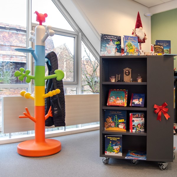 Un arbre féérique pour se rassembler. Une patère pour les jeunes, aux couleurs de l’arc-en-ciel, aussi ludique que seyante.