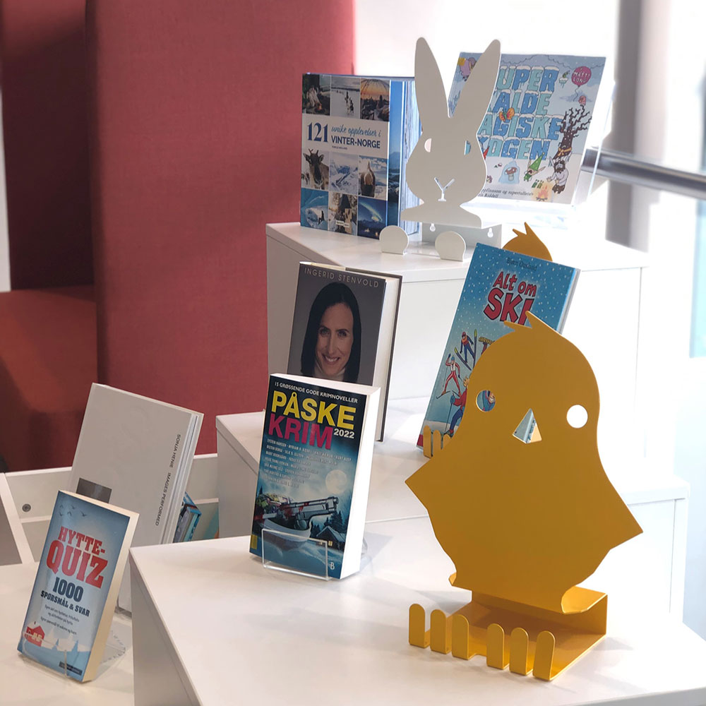 Donnez des conseils de lecture en utilisant un présentoir avec la forme d'un poussin.