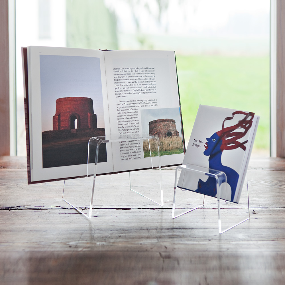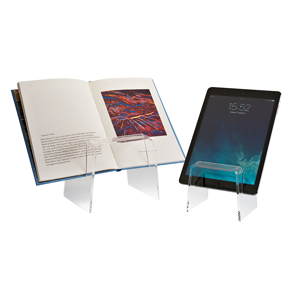 L’acrylique transparent permet de lire l’ensemble du texte même si le livre ou l’iPad est placé à l’intérieur du support.